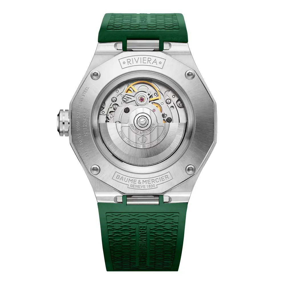 Baume & Mercier Riviera M0A10618 představuje moderní pojetí sportovní elegance s osobitým stylem, který vyniká díky odvážné zelené barvě. Tento model z ikonické kolekce Riviera kombinuje precizní švýcarské hodinářství s výrazným designem pro muže, kteří chtějí vyniknout.