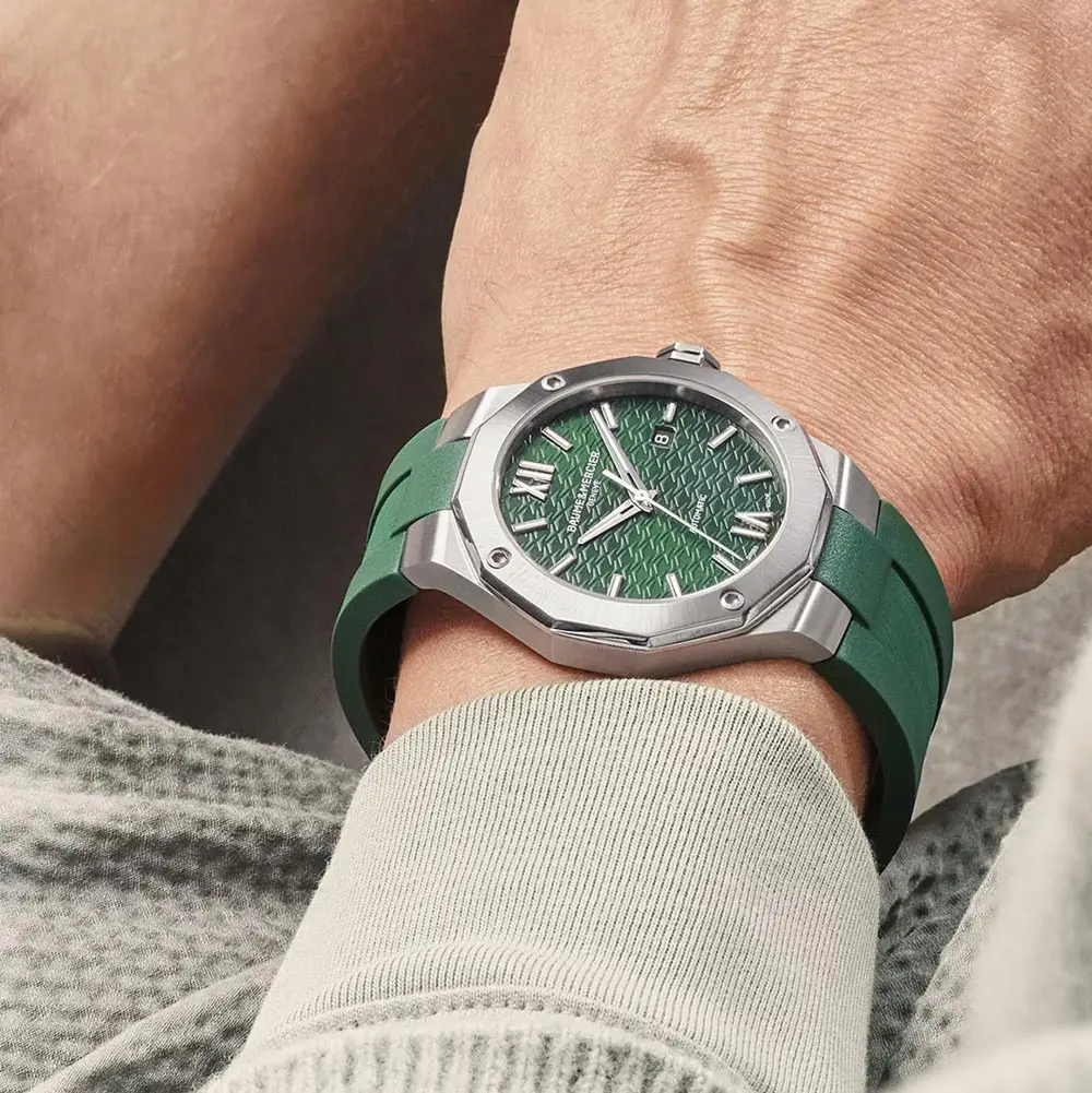Pouzdro z nerezové oceli o průměru 42 mm doplňuje typická dvanáctistranná luneta, jež dodává hodinkám nezaměnitelný charakter. Zelený ciferník s jemnou texturou je chráněn safírovým sklíčkem a doplněn o datumovku na 3. pozici, která zvyšuje funkčnost modelu.