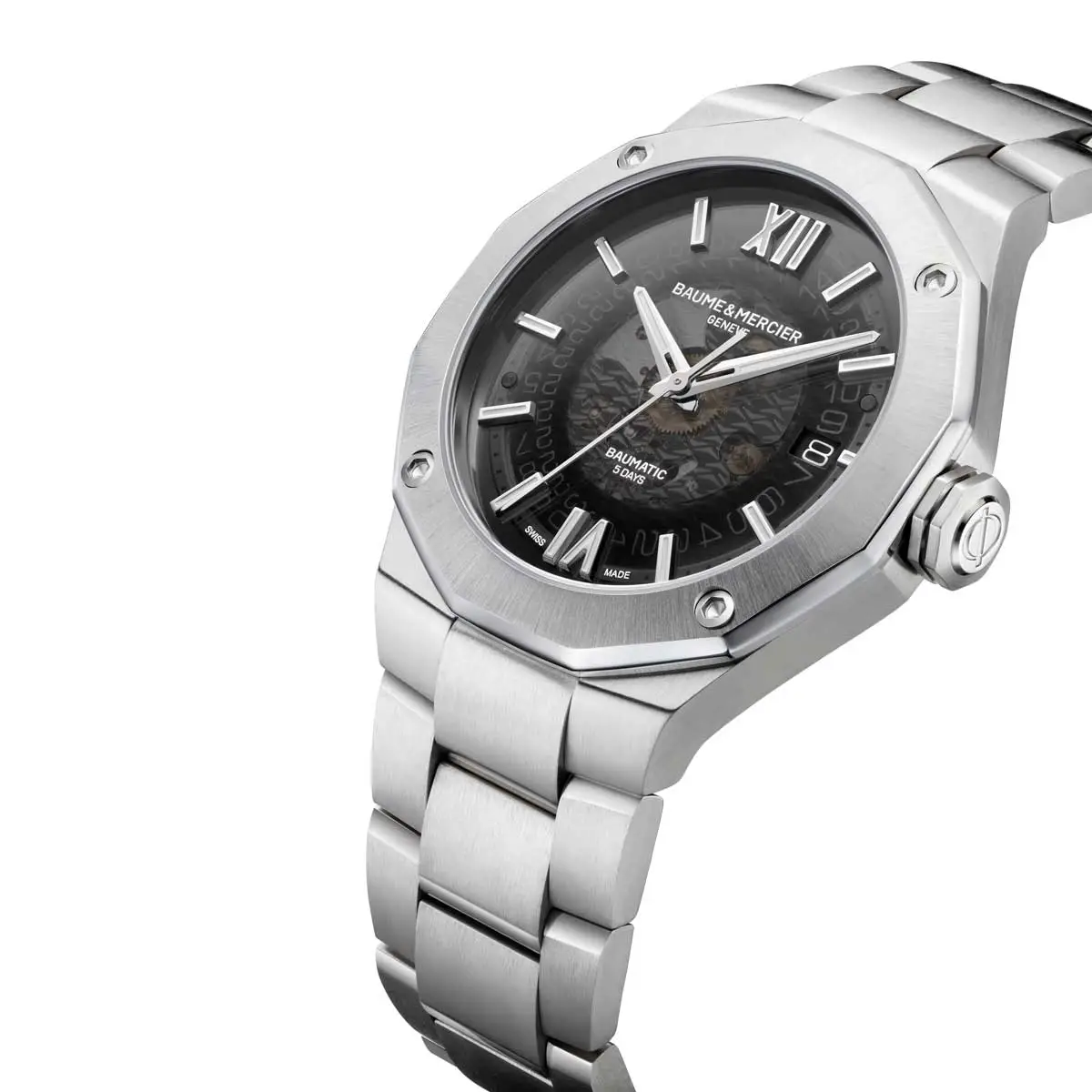 Modely Riviera kombinují luxusní materiály jako nerezová ocel, titan či safírové sklo s precizními švýcarskými strojky, včetně vysoce výkonného kalibru Baumatic. Nabídka zahrnuje klasické tříručkové modely, chronografy i skeletony – a díky rychlovýměnnému systému řemínků si hodinky snadno přizpůsobíte svému stylu. Riviera je symbolem elegance, svobody a kvality.