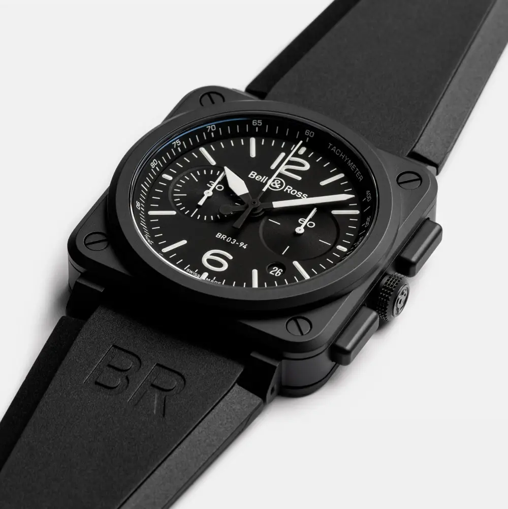 Bell & Ross BR 03-94 Black Matte (Ref. BR0394-BL-CE) představuje čistou esenci leteckého a vojenského designu, který je pro značku Bell & Ross typický. Tento chronograf je navržen jako profesionální nástroj, jehož estetika vychází z přístrojových panelů v kokpitech letadel – funkční, přesná a s výraznou osobností.