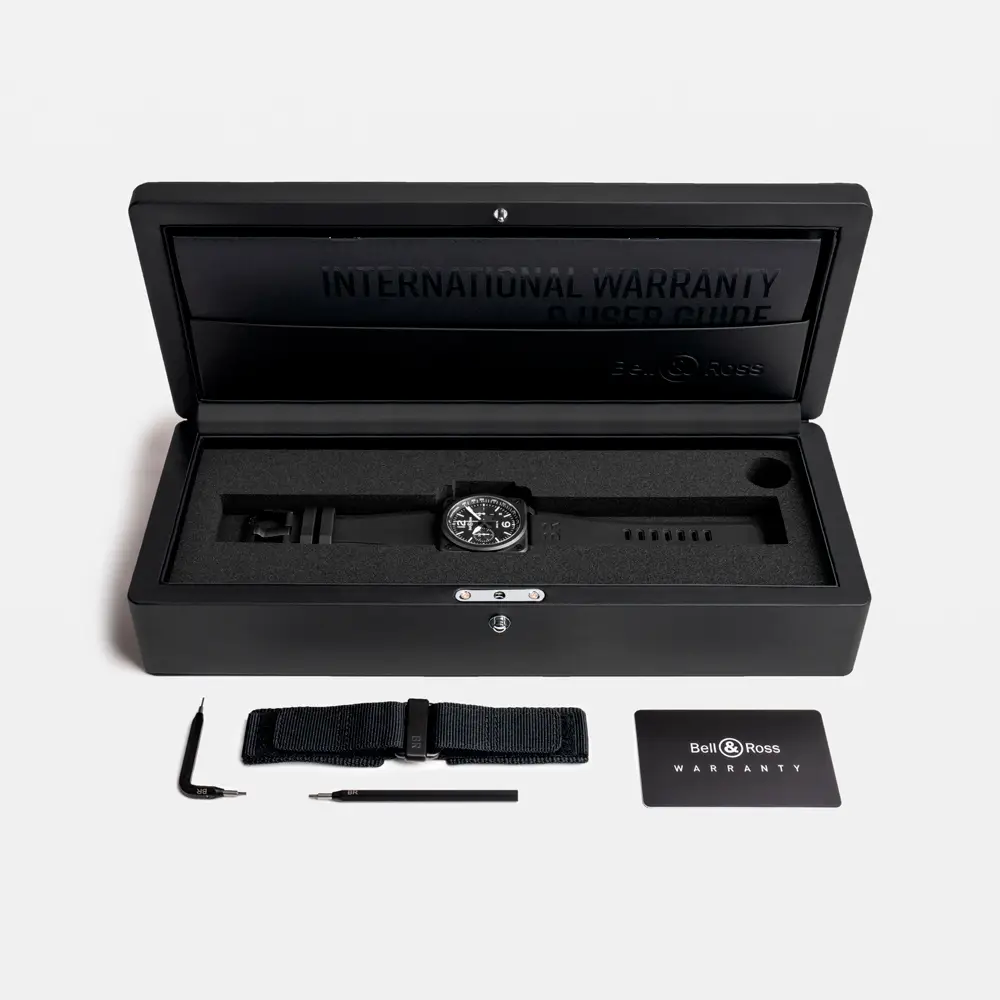 Uvnitř pracuje automatický strojek BR-CAL.301 s funkcí chronografu a datumovky mezi 4. a 5. hodinou, který poskytuje přesný chod a rezervu chodu přibližně 42 hodin. Díky vodotěsnosti 100 m (10 ATM) a černému kaučukovému řemínku jsou hodinky připraveny na každodenní nasazení i náročné mise. BR 03-94 Black Matte je symbolem síly, přesnosti a profesionálního výkonu.