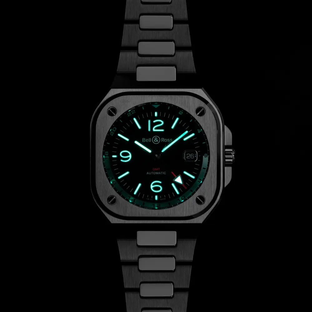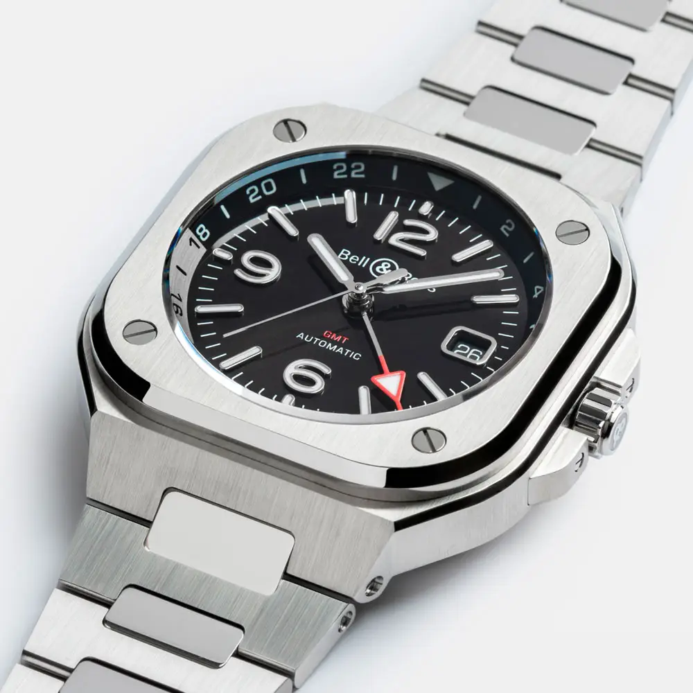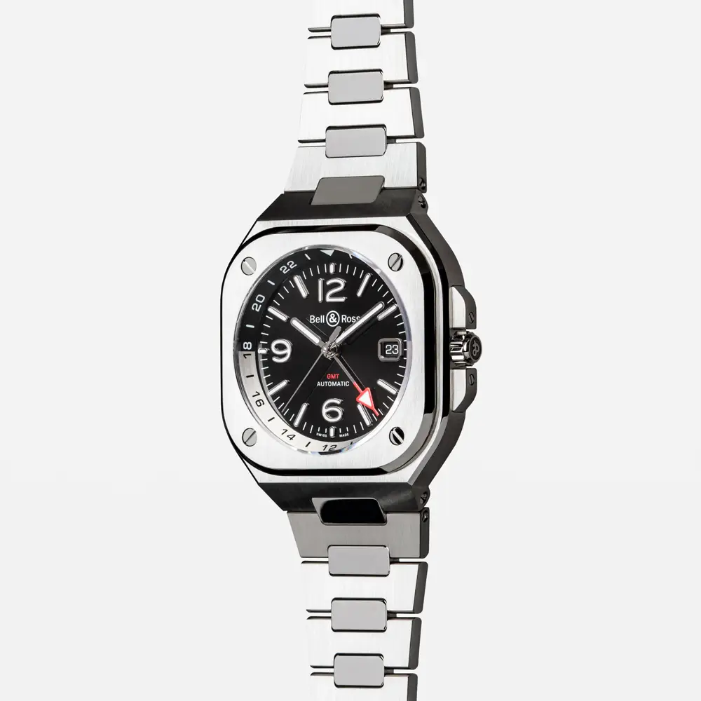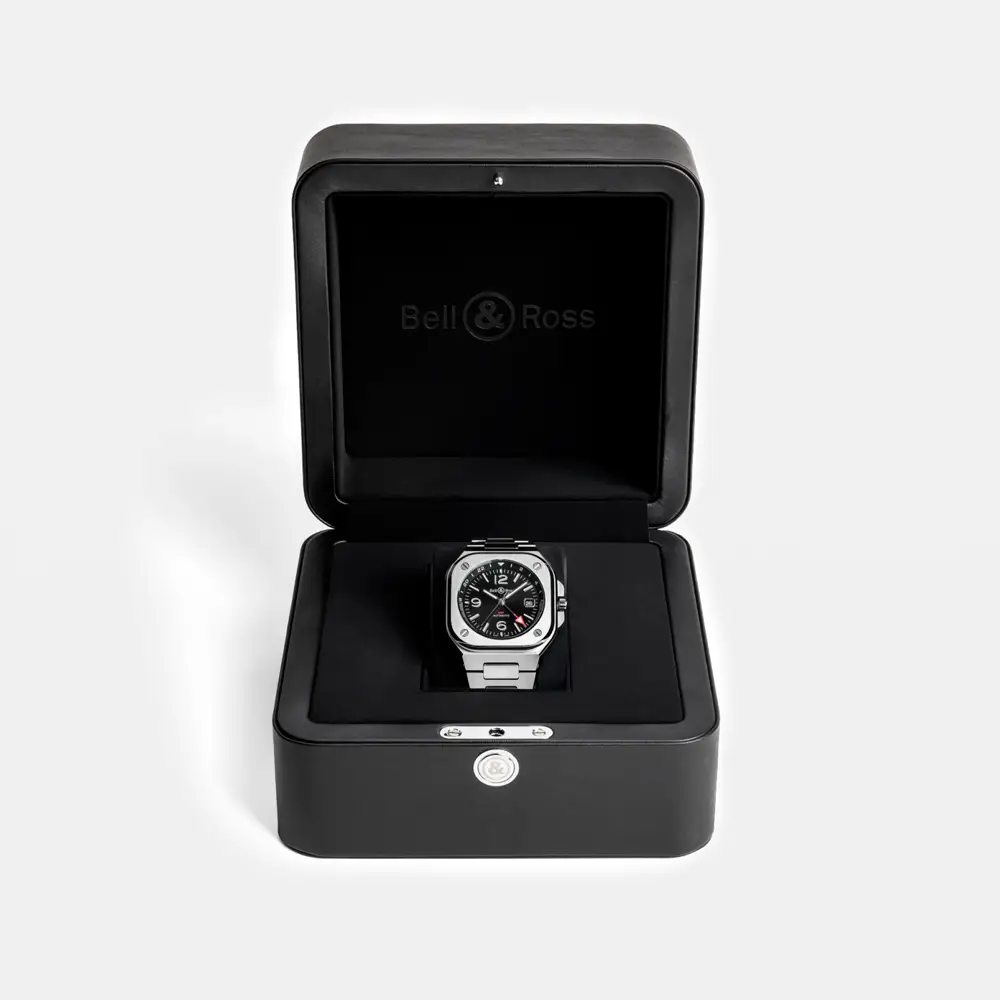 Bell & Ross BR 05 GMT (Ref. BR05G-BL-ST/SST) je elegantní a funkční model, který spojuje městský styl s duálním zobrazením času. Navržen pro moderního cestovatele, který se pohybuje napříč časovými pásmy, nabízí ideální rovnováhu mezi technickou precizností a sofistikovaným designem.