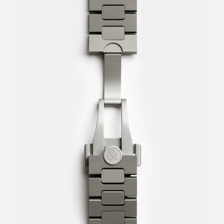 Pouzdro hodinek má kulatý tvar a průměr 41 mm, což zajišťuje vyvážený a elegantní vzhled na zápěstí. Vyrobeno je z titanu, díky čemuž jsou hodinky neobyčejně lehké, pevné a příjemné na nošení. Titanová luneta plynule navazuje na šedý titanový pásek s praktickou překlápěcí sponou, který podtrhuje technický charakter tohoto modelu a zároveň zajišťuje pohodlí a dlouhou životnost.