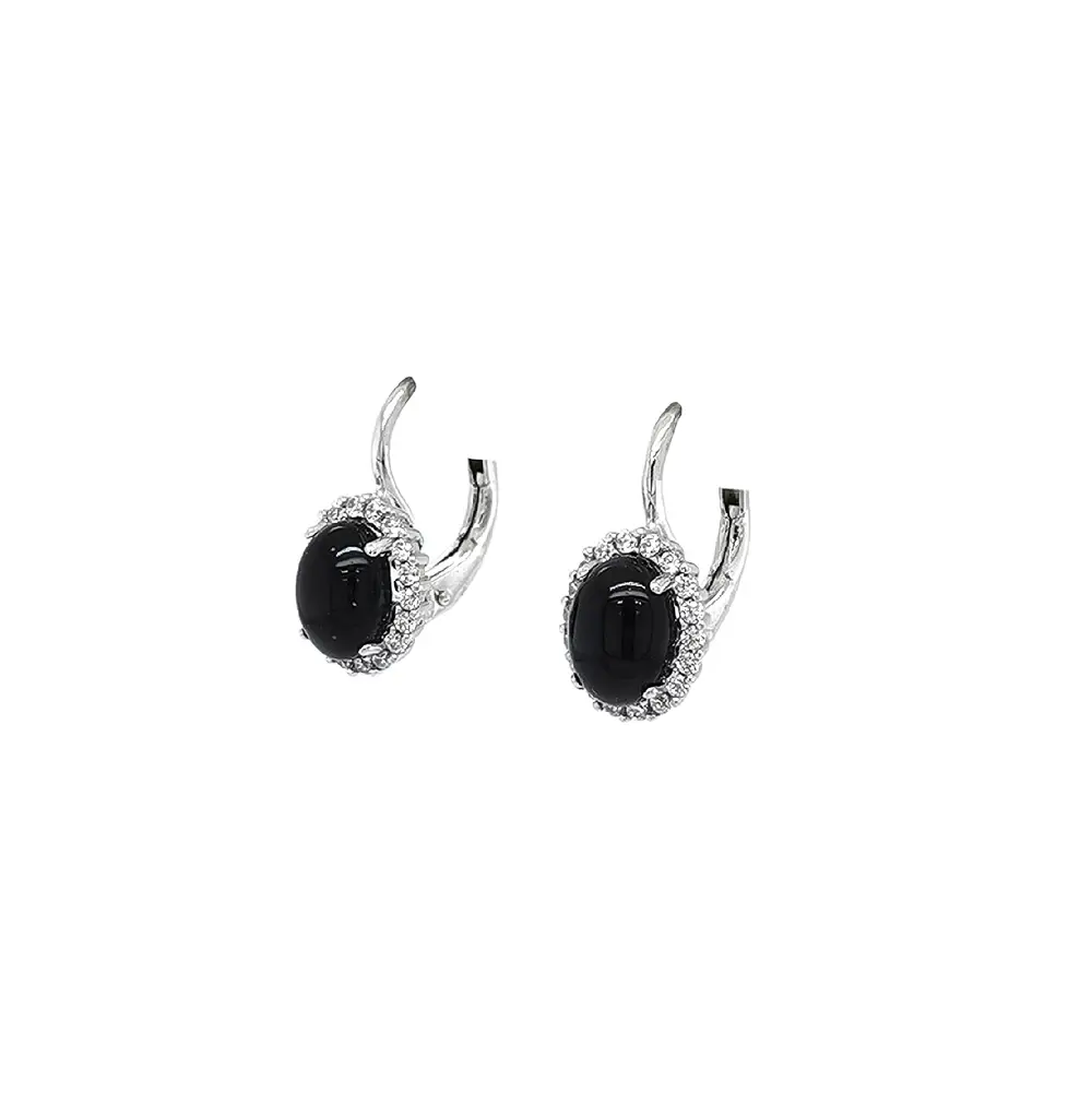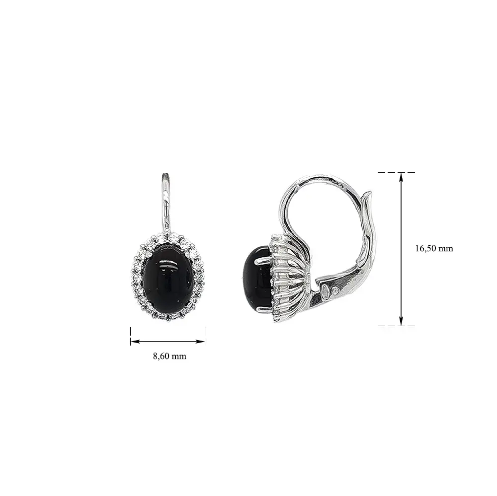 Bílé zlato, onyxy a zirkony v nadčasových náušnicích