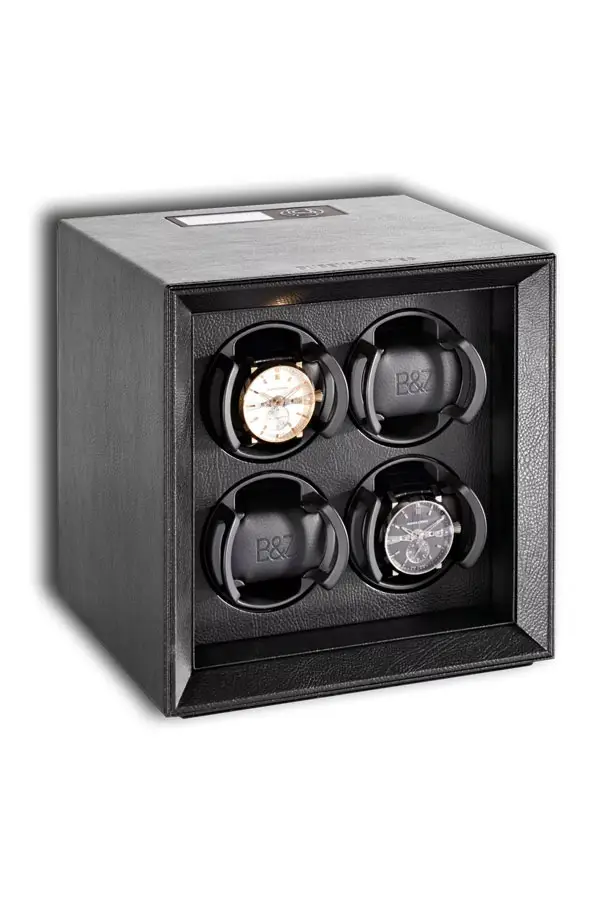 Natahovač hodinek Buben & Zorweg Safe Master 4 Black je ideální volbou pro bezpečné a elegantní uložení až čtyř automatických hodinek. Jeho minimalistické provedení potažené luxusní černou kůží spojuje decentní vzhled s precizní německou technologií. Kompaktní kubická konstrukce umožňuje snadné umístění do interiéru či trezoru, zatímco kvalitní materiály a precizní detaily podtrhují charakter značky Buben & Zorweg.