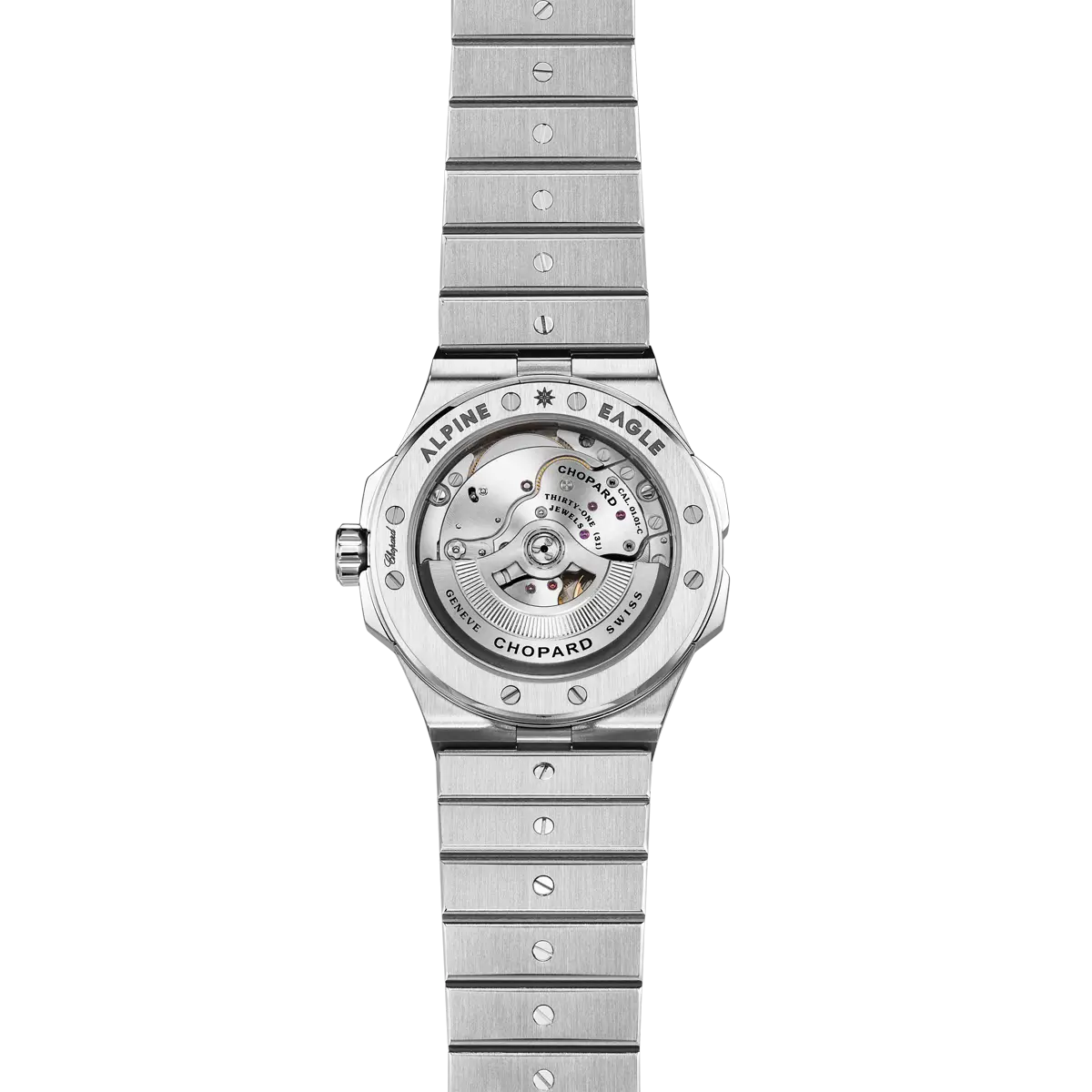 Hodinky Alpine Eagle spojují sportovní charakter, sofistikovanost a ušlechtilé materiály. Pouzdra i tahy jsou vyrobeny z exkluzivní slitiny Lucent Steel™, vyvinuté přímo značkou Chopard. Tento recyklovaný a hypoalergenní materiál vyniká výjimečným leskem a tvrdostí srovnatelnou se zlatem.