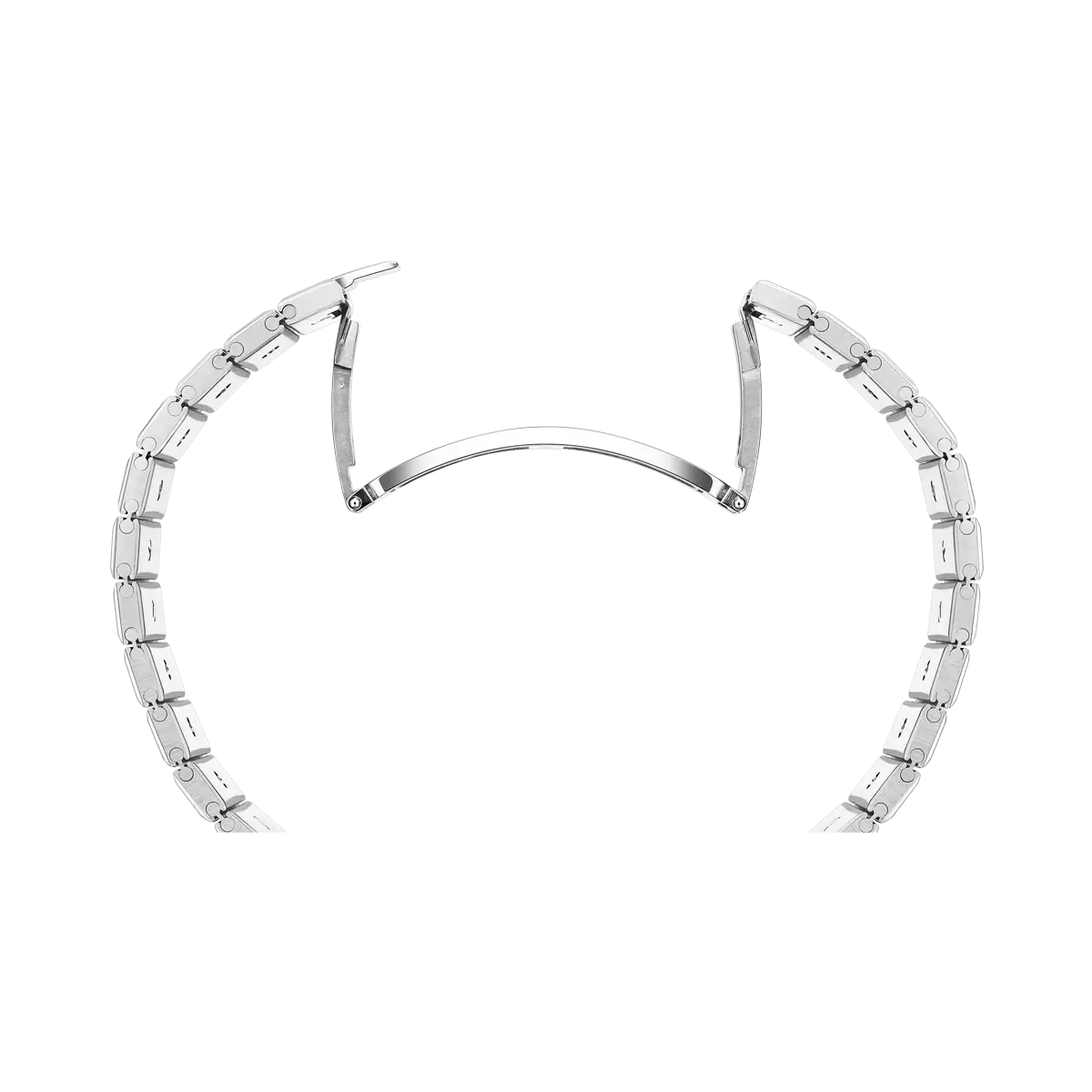 Robustní ocelový tah s překlápěcí sponou zajišťuje komfortní a bezpečné nošení, zatímco celkový vzhled podtrhuje sportovně-elegantní charakter modelu.