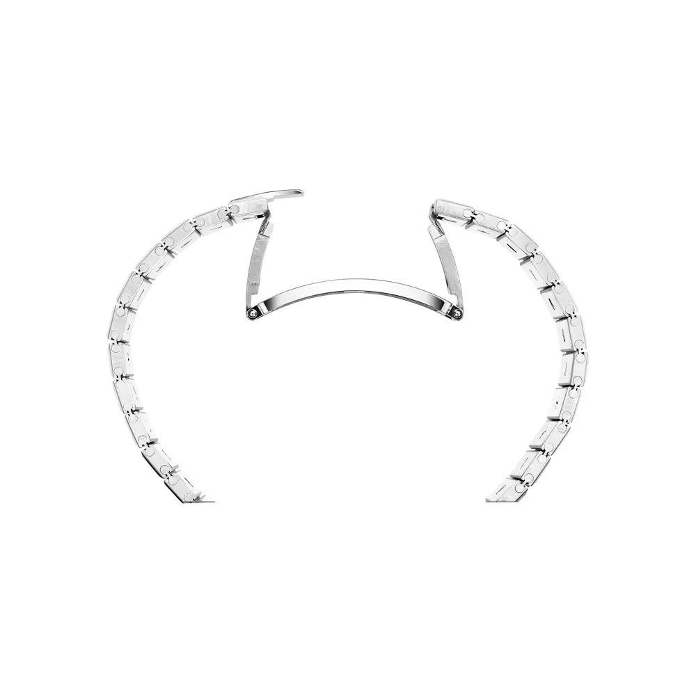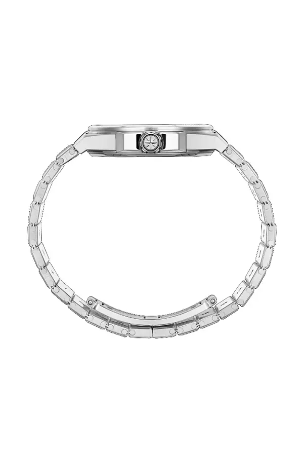Hodinky jsou završené ocelovým náramkem se skládací sponou, který dokonale ladí s celkovým designem a zajišťuje maximální pohodlí při nošení.