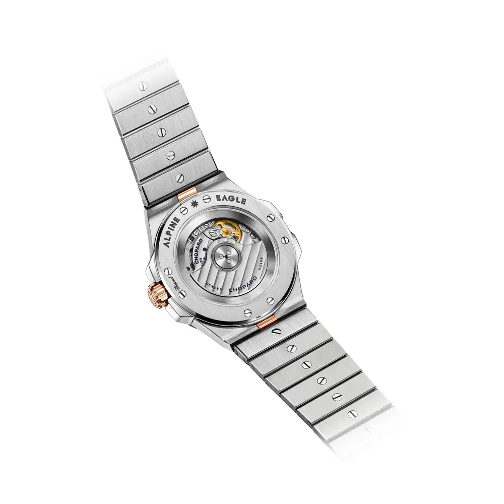 Hodinky Alpine Eagle spojují sportovní charakter, sofistikovanost a ušlechtilé materiály. Pouzdra i tahy jsou vyrobeny z exkluzivní slitiny Lucent Steel™, vyvinuté přímo značkou Chopard. Tento recyklovaný a hypoalergenní materiál vyniká výjimečným leskem a tvrdostí srovnatelnou se zlatem.