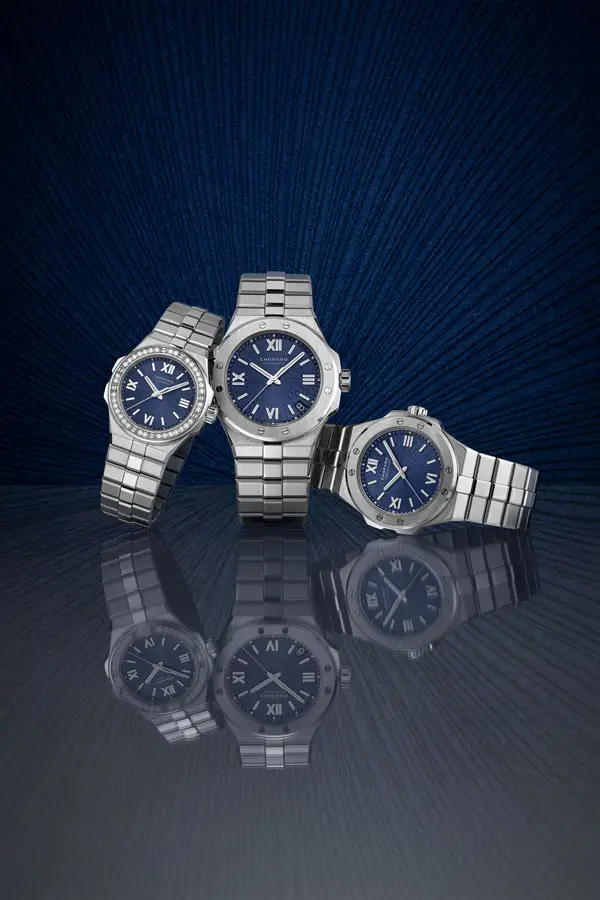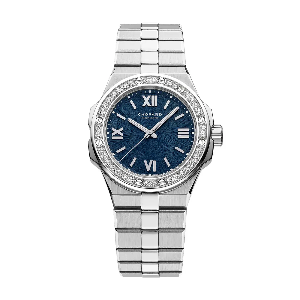 Luneta osazená diamanty přidává hodinkám luxusní jiskru, zatímco modrý ciferník s analogovým zobrazením odráží hloubku horského nebe. Srdcem těchto hodinek je precizní mechanický strojek s automatickým nátahem – Chopard 09.01-C, který dosahuje frekvence 25 200 vph (3,5 Hz) a nabízí rezervu chodu až 42 hodin. Certifikace chronometru (COSC) garantuje vynikající přesnost.