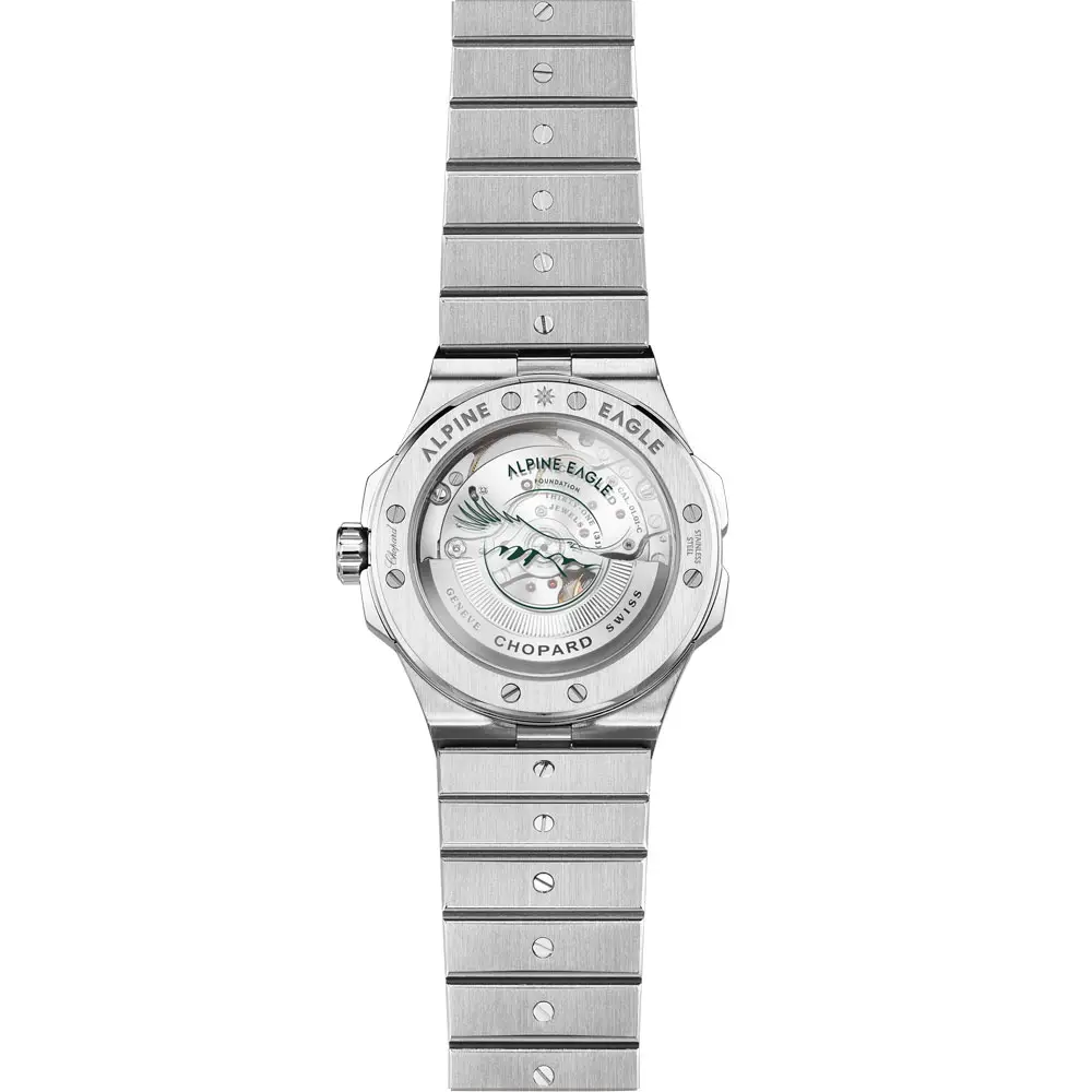 Hodinky Alpine Eagle spojují sportovní charakter, sofistikovanost a ušlechtilé materiály. Pouzdra i tahy jsou vyrobeny z exkluzivní slitiny Lucent Steel™, vyvinuté přímo značkou Chopard. Tento recyklovaný a hypoalergenní materiál vyniká výjimečným leskem a tvrdostí srovnatelnou se zlatem.