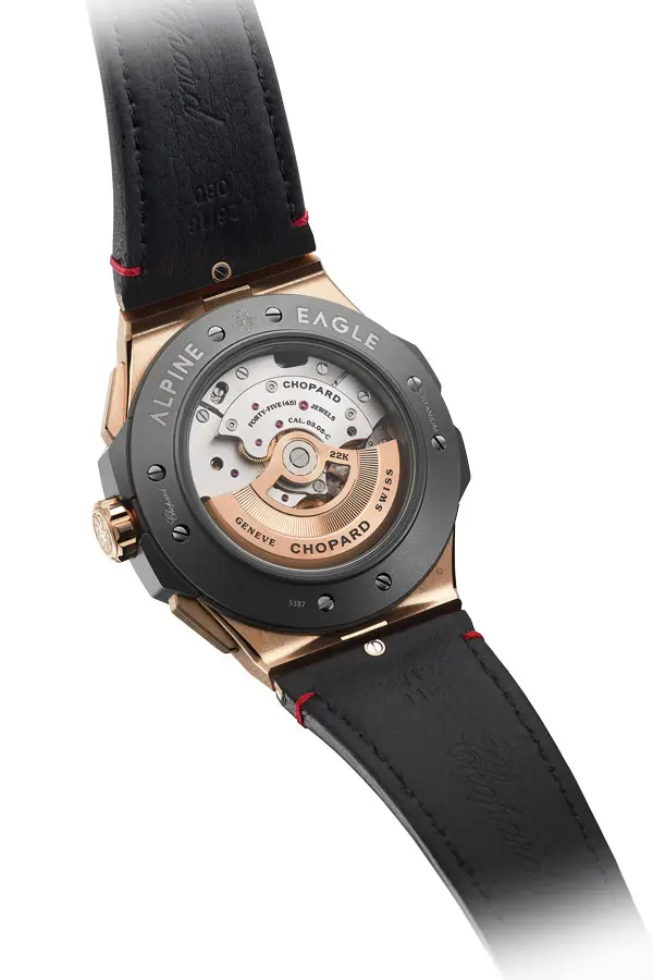 Uvnitř hodinek tepe precizní automatický strojek Chopard 03.05-C, certifikovaný jako chronometr COSC, s frekvencí 28 800 vph (4Hz) a rezervou chodu až 60 hodin. Tento in-house kalibr zajišťuje vysokou spolehlivost a výkon, a zároveň umožňuje měření času s přesností na desetiny sekundy.