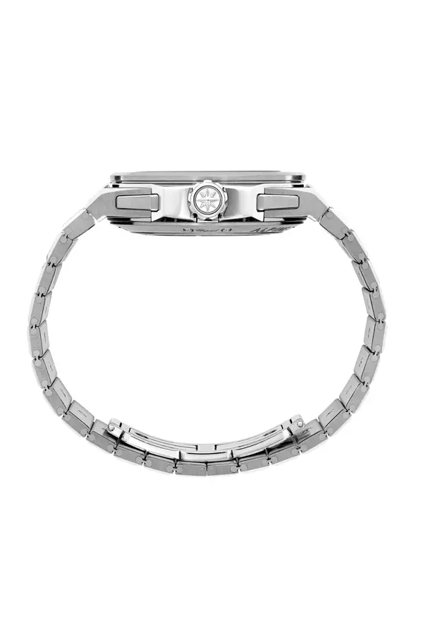 Masivní soudkovité pouzdro o průměru 44 mm je vyrobeno z odolné nerezové oceli a doplněno lunetou s růžovým zlacením, což dodává celku na kontrastu a eleganci. Safírové sklíčko s antireflexní úpravou zajišťuje maximální čitelnost ciferníku za všech podmínek.
