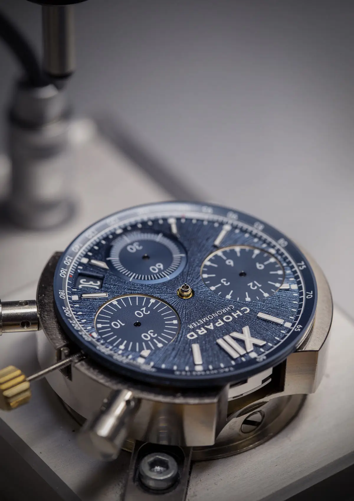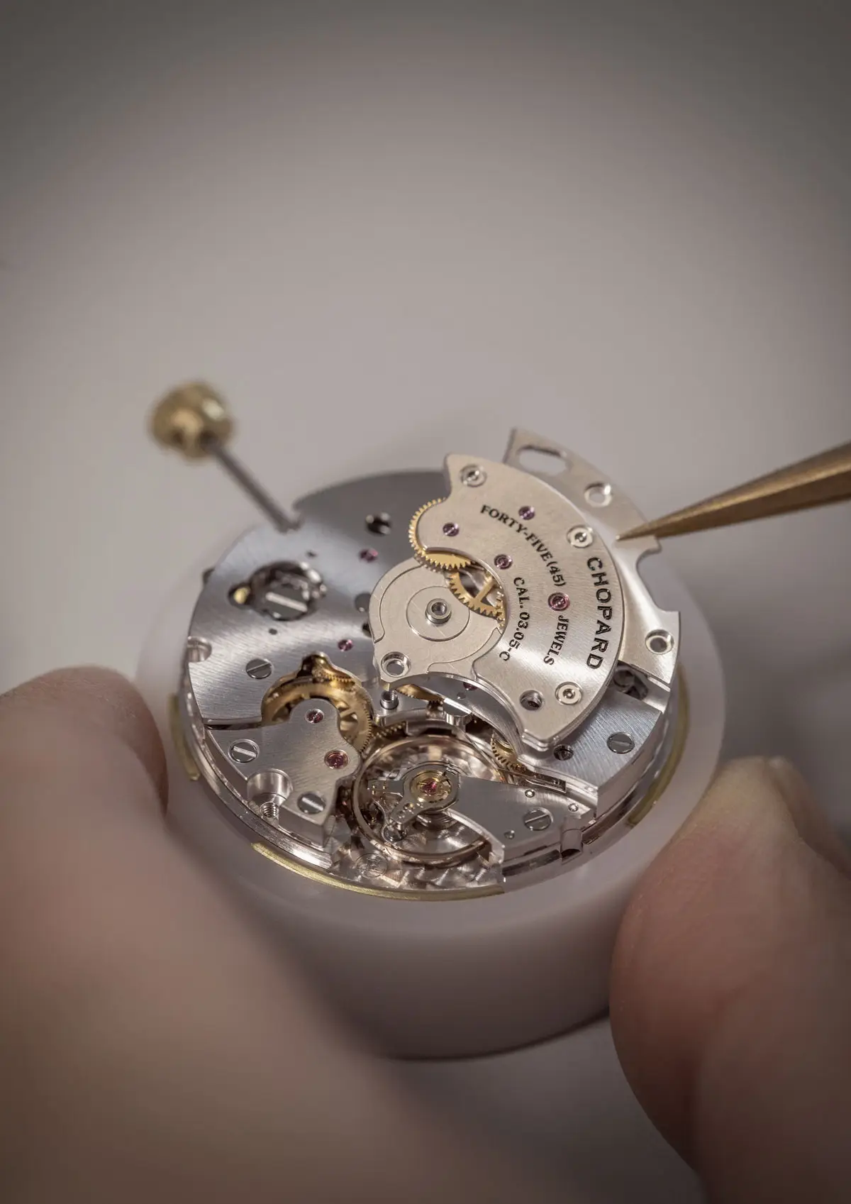 Uvnitř se skrývá výkonný mechanický strojek Chopard 03.05-C s automatickým nátahem, rezervou chodu až 60 hodin, frekvencí 28 800 vph (4 Hz) a osazený 45 ložiskovými kameny. Tento chronograf je také certifikován jako chronometr COSC, což zaručuje výjimečnou přesnost.