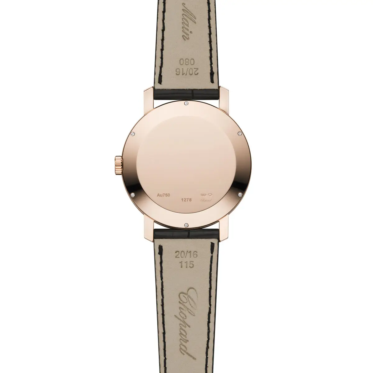 Hodinky Chopard Classic 161278-5005 ztělesňují nadčasový styl a noblesu v každém detailu. Jejich kulaté pouzdro o průměru 40 mm je vyrobeno z exkluzivního 18kt růžového zlata, které jim propůjčuje teplý a sofistikovaný nádech. Pod safírovým sklíčkem se nachází klasický bílý ciferník, jehož jednoduchost zdůrazňuje eleganci tohoto modelu.