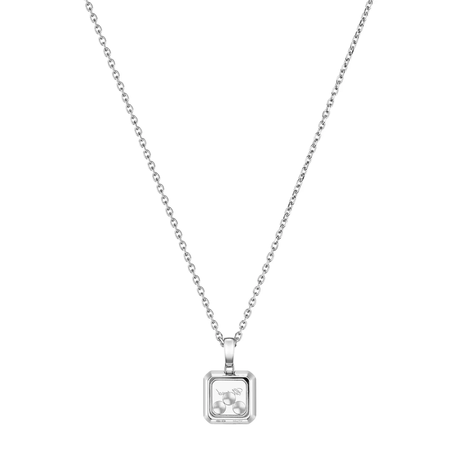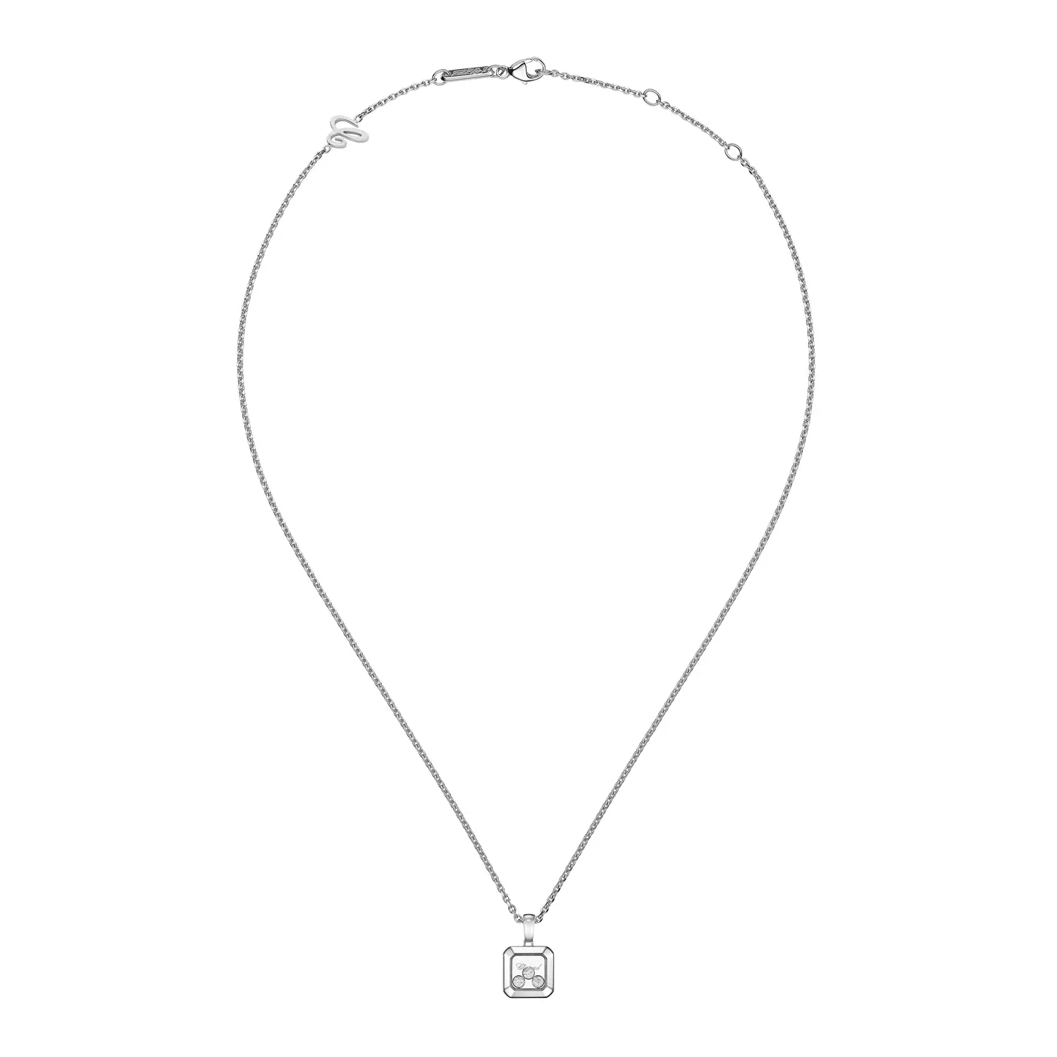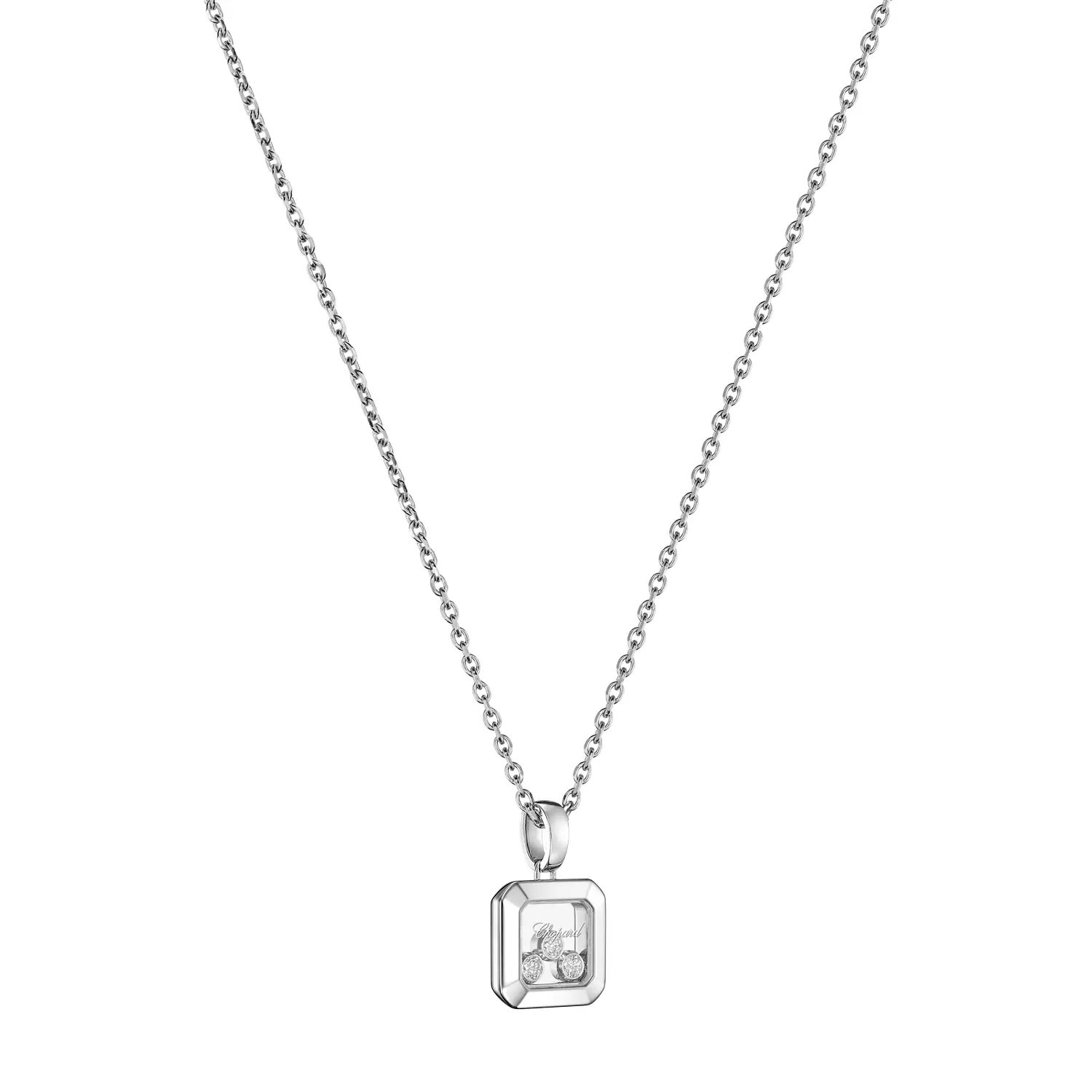 Chopard Happy Diamonds Icons 79A115‑1001 je elegantní dámský přívěsek z ikonické kolekce, která oslavuje radost, svobodu a smysl pro krásu. Jeho základ tvoří 18kt eticky získané bílé zlato, v jehož srdci se mezi dvěma safírovými sklíčky volně pohybují brilantně broušené diamanty. Tento designový podpis značky Chopard vytváří efekt „tancujících diamantů“, které se při každém pohybu rozzáří a dodají šperku fascinující dynamiku.