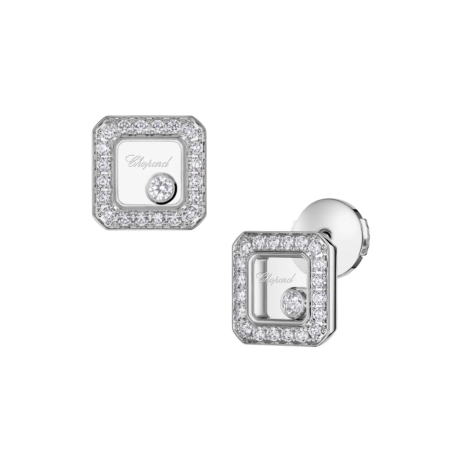 Každá náušnice obsahuje diamant o hmotnosti 0,19 ct, celkem tedy 0,38 ct, a to v nejvyšší kvalitě – barva F–G a čistota IF–VVS. Volné uložení kamene umožňuje maximální třpyt a světelnou hru, která podtrhuje výjimečnost celého designu. Klenotnictví Chopard tímto modelem opět potvrzuje své mistrovství ve zpracování jemných šperků.
