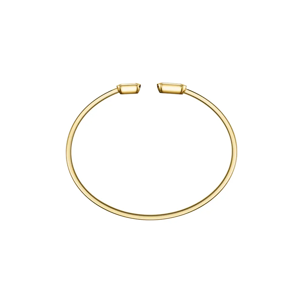 Chopard Happy Diamonds Icons Bangle 85A114-0002 je ikonickým symbolem radosti, pohybu a ženské elegance. Tento půvabný náramek je vyroben z 18kt etického žlutého zlata, které mu dodává hřejivý, zářivý tón. Centrálním motivem jsou volně se pohybující diamanty mezi dvěma safírovými sklíčky, které se při každém pohybu zápěstí rozsvěcují odlesky světla – charakteristický prvek kolekce Happy Diamonds, jenž vyjadřuje svobodu, radost a hravost života.