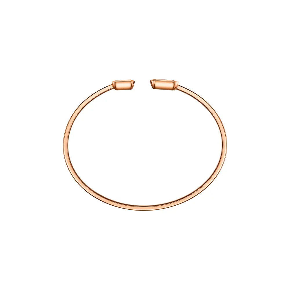 Chopard Happy Diamonds Icons Bangle 85A114-5002 je oslavou radosti, pohybu a ženské elegance. Tento jemný náramek je vyroben z 18kt etického růžového zlata, které mu propůjčuje teplý, romantický odstín. Centrálním motivem jsou volně pohybující se diamanty mezi dvěma safírovými sklíčky, jež se při každém pohybu zápěstí rozzáří jedinečnou hrou světla – ikonický prvek kolekce Happy Diamonds, který symbolizuje svobodu a radost ze života.