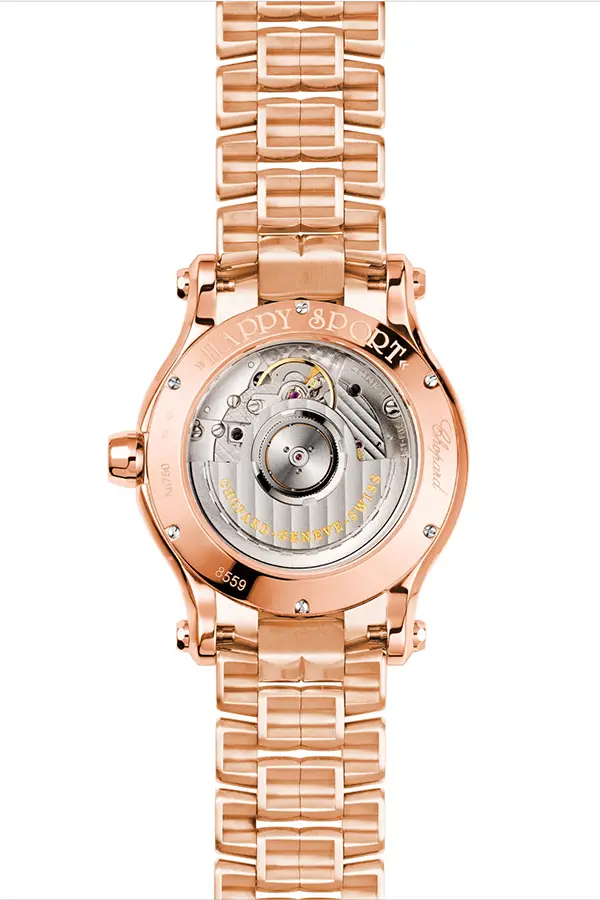 Hodinky Chopard Happy Sport 274808-5002 představují vrchol dámské elegance – noblesu zrozenou ze zlata, diamantů a švýcarské preciznosti. Jejich kulaté pouzdro o velikosti 36 mm, vyrobené z 18karátového růžového zlata, vyzařuje teplý, jemně saténový lesk, který okamžitě upoutá pozornost.