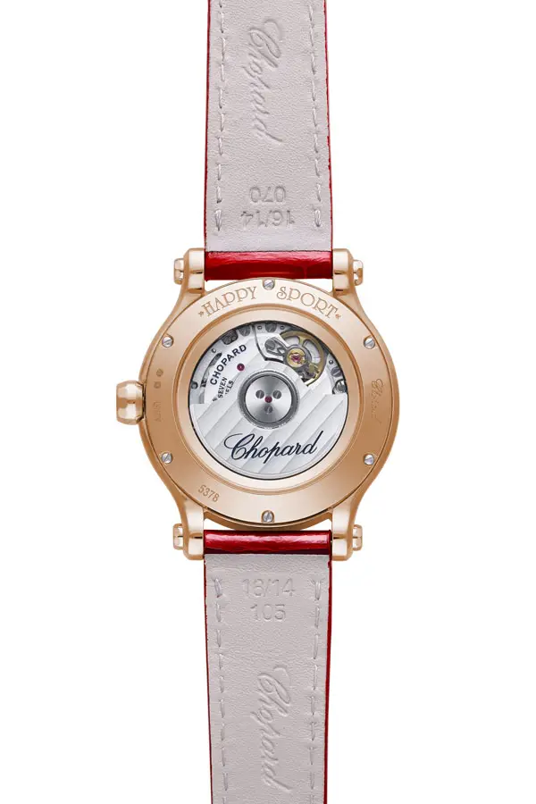 Uvnitř se nachází mechanický strojek s automatickým nátahem CHOPARD 09.01-C s rezervou chodu 42 hodin a 27 kameny, který je známý svou přesností a spolehlivostí. Díky průhlednému zadnímu víčku lze obdivovat jeho jemné dekorace. Model je vodotěsný do 30 metrů a představuje ideální rovnováhu mezi ženskostí, elegancí a švýcarskou dokonalostí. Chopard Happy Sport 275378-5005 není jen hodinkami, ale šperkem plným vášně a osobitého stylu.