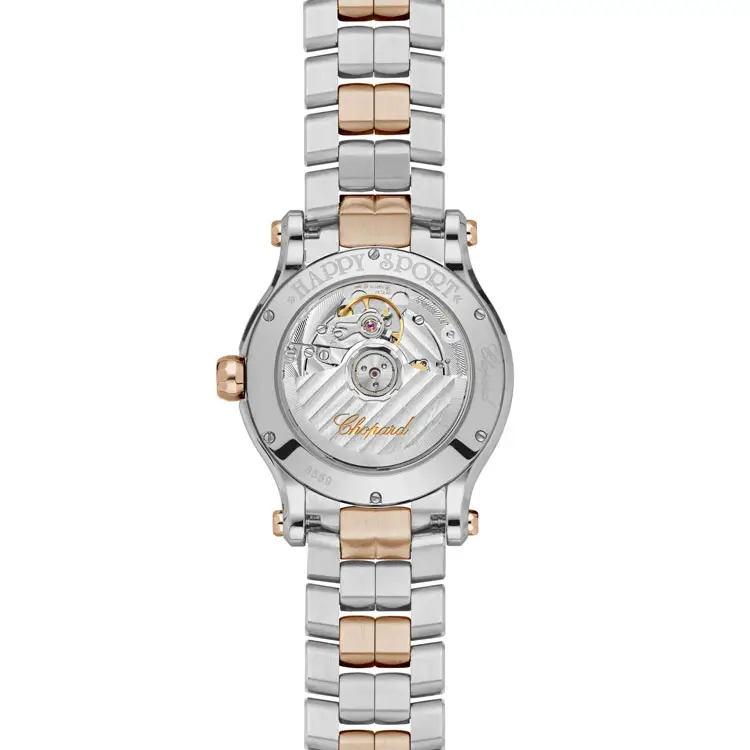 Luxusní náramek z kombinace oceli a růžového zlata vytváří dokonalý kontrast mezi klasikou a současným stylem. Chopard Happy Sport 278559-6025 nejsou jen hodinky, ale skutečný šperk na zápěstí, který zdůrazní ženskost, eleganci a přinese radost při každém pohledu.