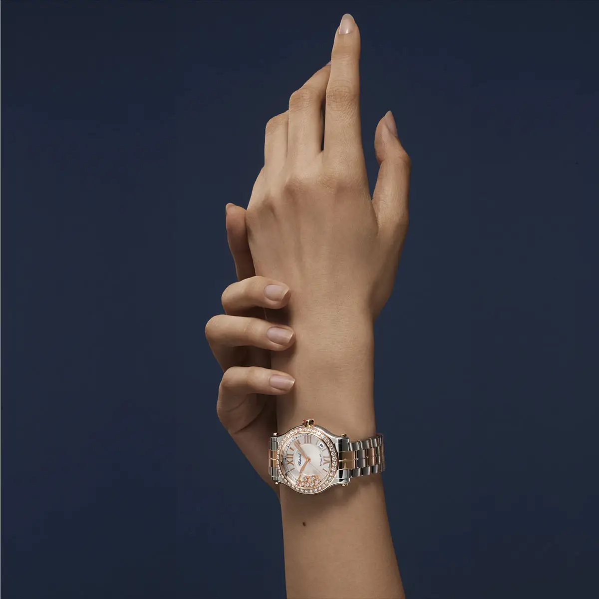Happy Sport představuje harmonické spojení hravé elegance, švýcarské hodinářské preciznosti a šperkařského mistrovství – hodinky, které odrážejí sílu, styl i jemnost moderní ženy.