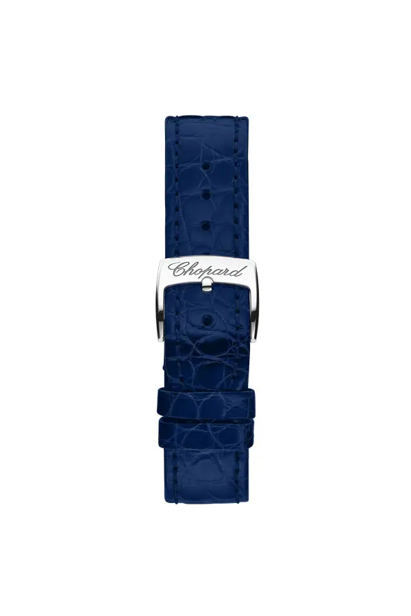 Celkový design doplňuje modrý řemínek z aligátoří kůže s klasickou trnovou sponou, který podtrhuje harmonii a eleganci celého modelu. Uvnitř pracuje švýcarský quartzový strojek, garantující mimořádnou přesnost a snadnou údržbu. Chopard Happy Sport 278582-6012 představuje ideální spojení funkčnosti, stylu a ženské hravosti, která je s touto kolekcí neodmyslitelně spjata.