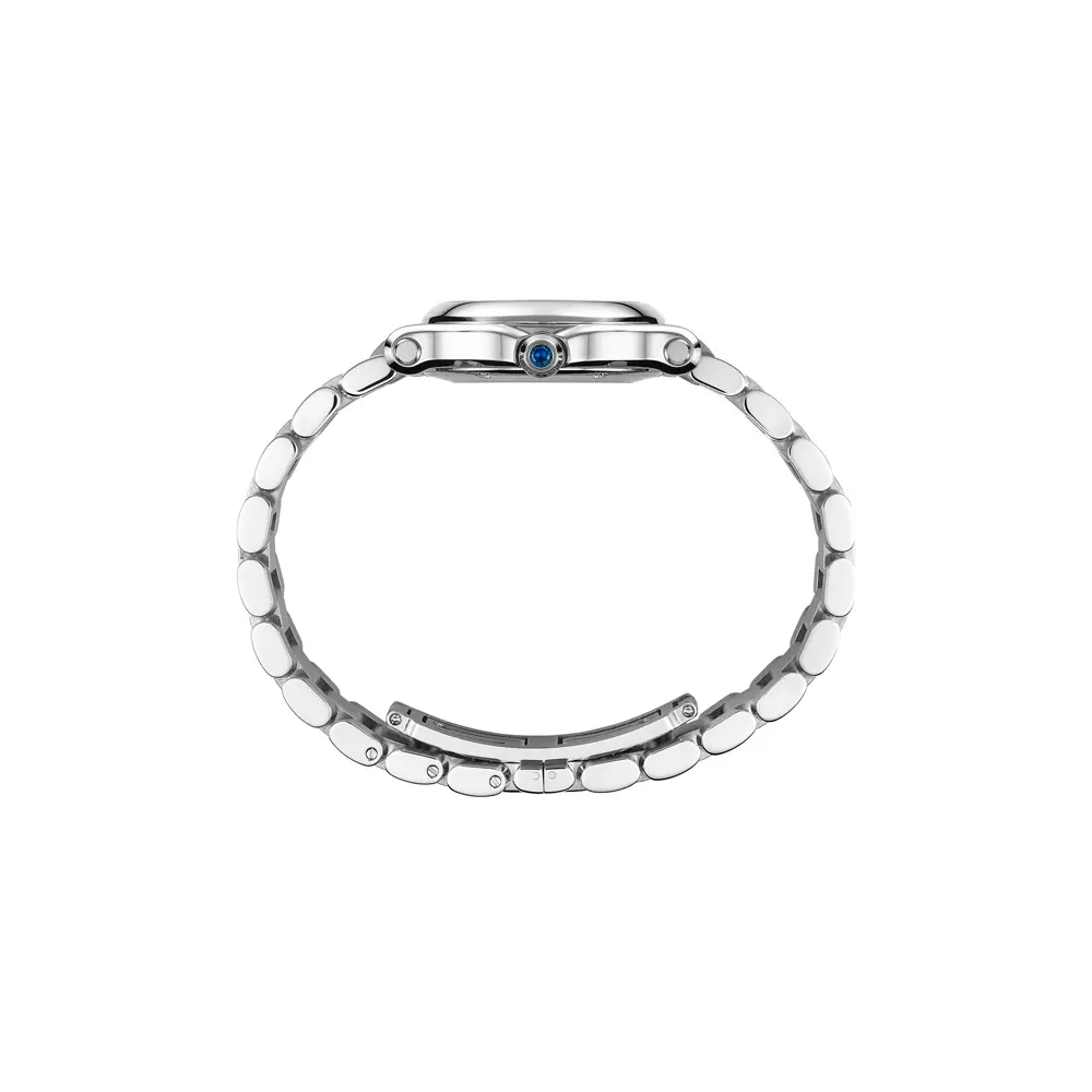 Jejich kulaté ocelové pouzdro o průměru 30 mm spolu s lunetou z nerezové oceli tvoří elegantní rám pro stříbrný ciferník, v jehož středu tančí volně pohybující se diamanty, jež hrají s každým pohybem zápěstí.