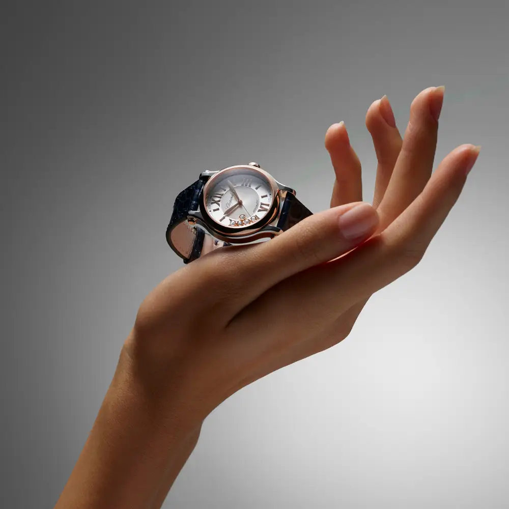 Happy Sport představuje harmonické spojení hravé elegance, švýcarské hodinářské preciznosti a šperkařského mistrovství – hodinky, které odrážejí sílu, styl i jemnost moderní ženy.