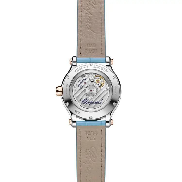 Uvnitř těchto hodinek bije precizní švýcarský mechanický strojek s automatickým nátahem, který zajišťuje spolehlivý a plynulý chod. Tento kalibr je ukázkou hodinářského umění značky Chopard, které spojuje výkon, kvalitu a estetiku v jediný harmonický celek.
