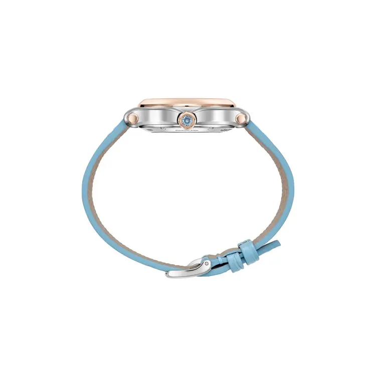 Hlavním poutačem pohledů je však nádherný analogový ciferník v tyrkysové barvě, ozdobený volně se pohybujícími diamanty, které tančí mezi dvěma sklíčky. Tento vizuální efekt je hravý, hypnotizující a s každým pohybem zápěstí přináší nový záblesk světla a radosti.