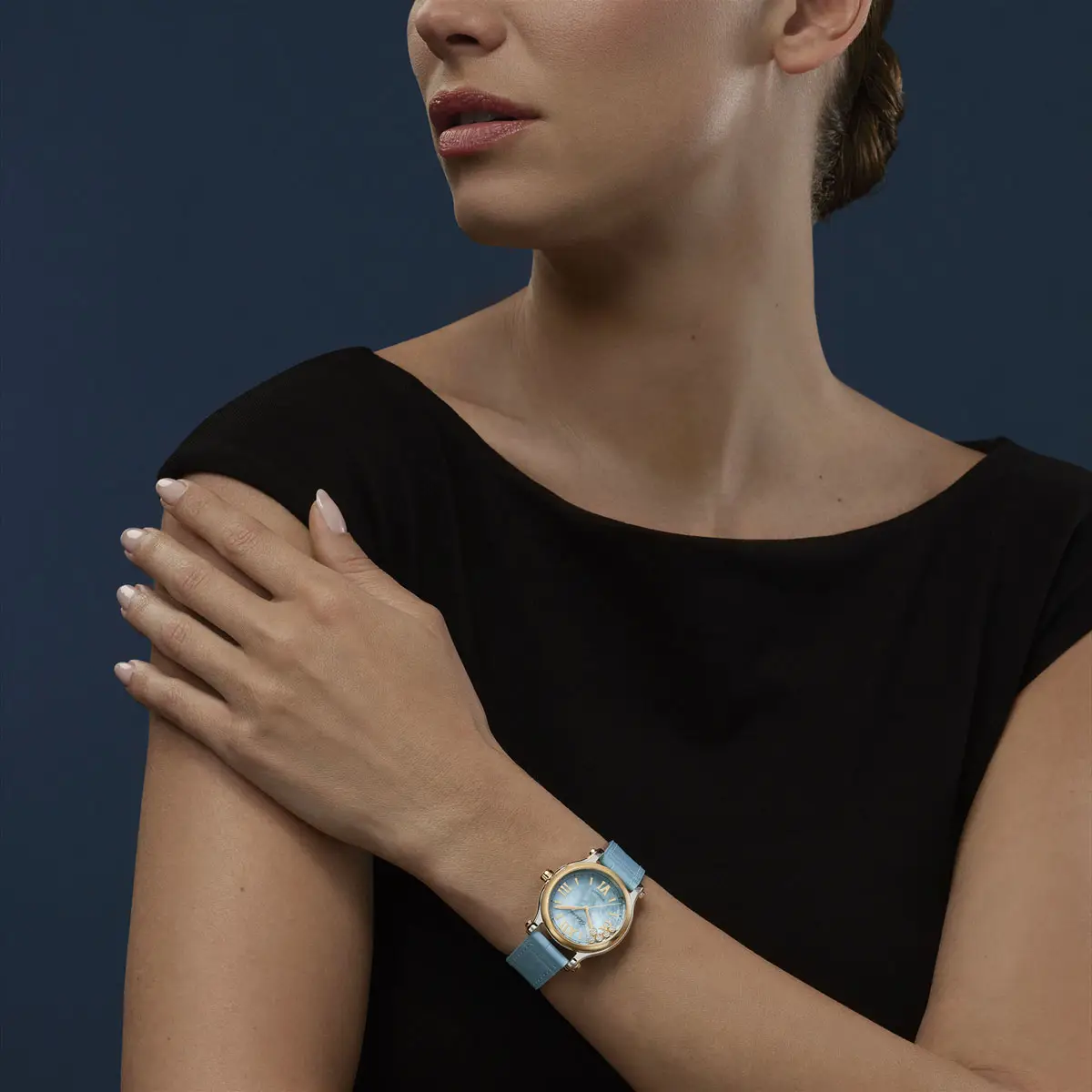 Happy Sport představuje harmonické spojení hravé elegance, švýcarské hodinářské preciznosti a šperkařského mistrovství – hodinky, které odrážejí sílu, styl i jemnost moderní ženy.