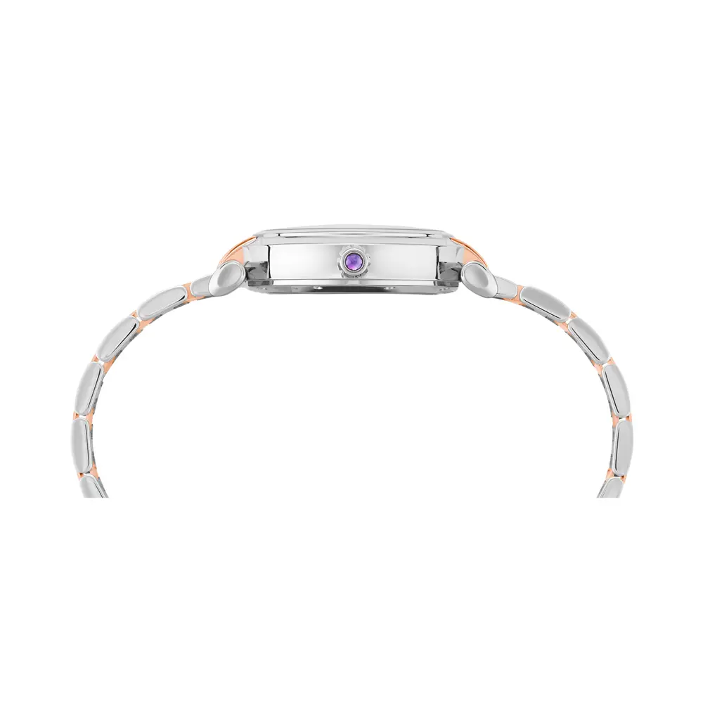 Pouzdro o průměru 29 mm doplňuje safírové sklíčko odolné proti poškrábání, chránící elegantní stříbrný ciferník s perleťovým středem. Jemné římské číslice a tenké ručky dodávají hodinkám ušlechtilou rovnováhu mezi čistotou a luxusem. Korunka zdobená ametystovým kabošonem je charakteristickým detailem kolekce Imperiale, který podtrhuje ženskou rafinovanost.