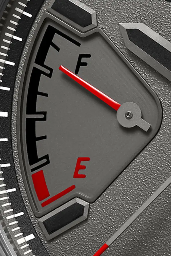 Černý analogový ciferník s ukazatelem rezervy chodu evokuje přístrojovou desku klasického závodního vozu, přičemž zajišťuje dokonalou čitelnost. Safírové sklo s antireflexní úpravou chrání ciferník před poškozením.