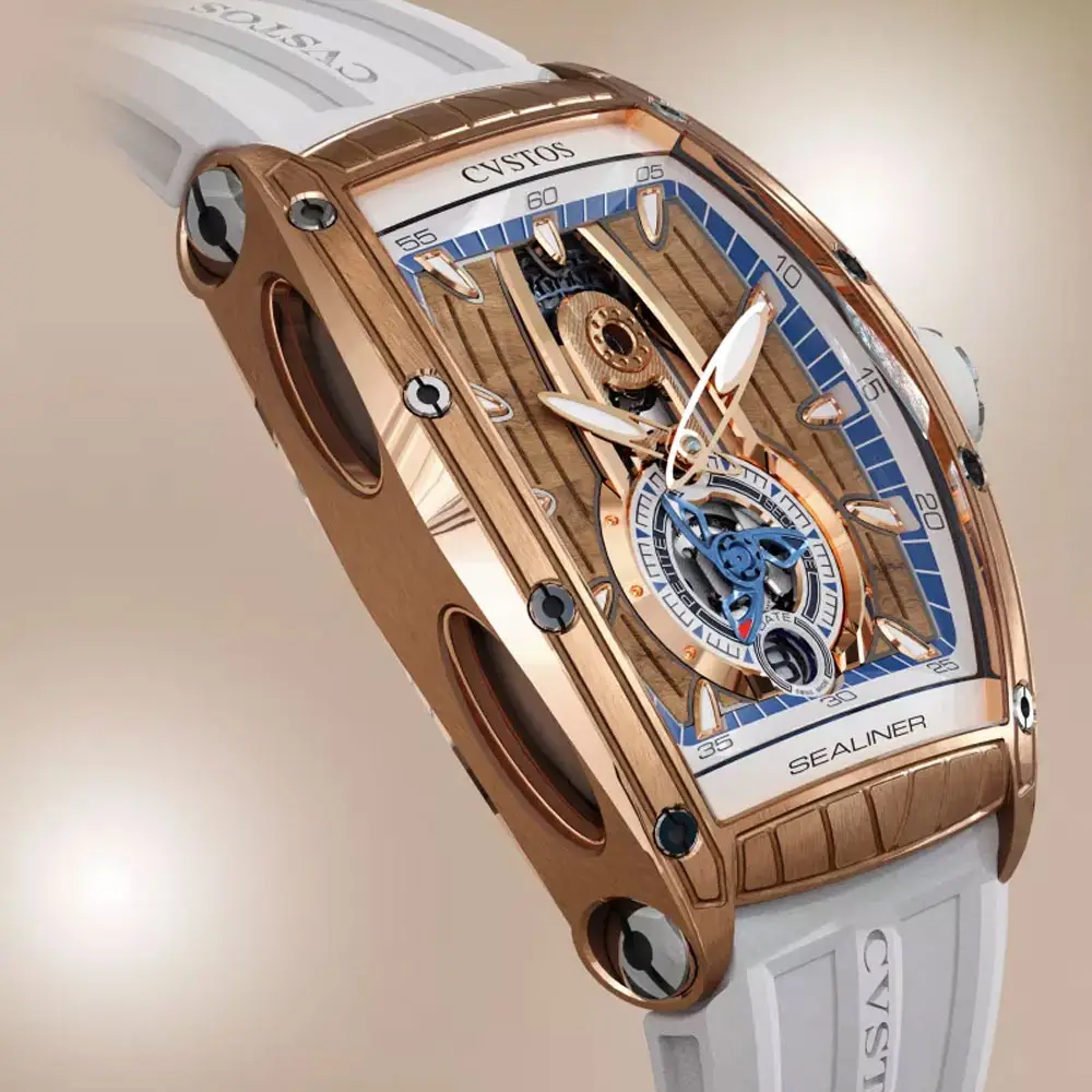 Uvnitř pracuje automatický mechanický strojek Cvstos CVS410, precizně skeletonizovaný a rhodiovaný pro maximální vizuální i technickou čistotu. Nabízí funkce hodin, minut, sekund a data, s rezervou chodu přibližně 42 hodin a frekvencí 28 800 vph. Sealiner PS Thirty6 tak představuje harmonické spojení špičkové technologie, exkluzivních materiálů a odvážného designu – ideální volba pro milovníky výjimečných, moderních luxusních hodinek.