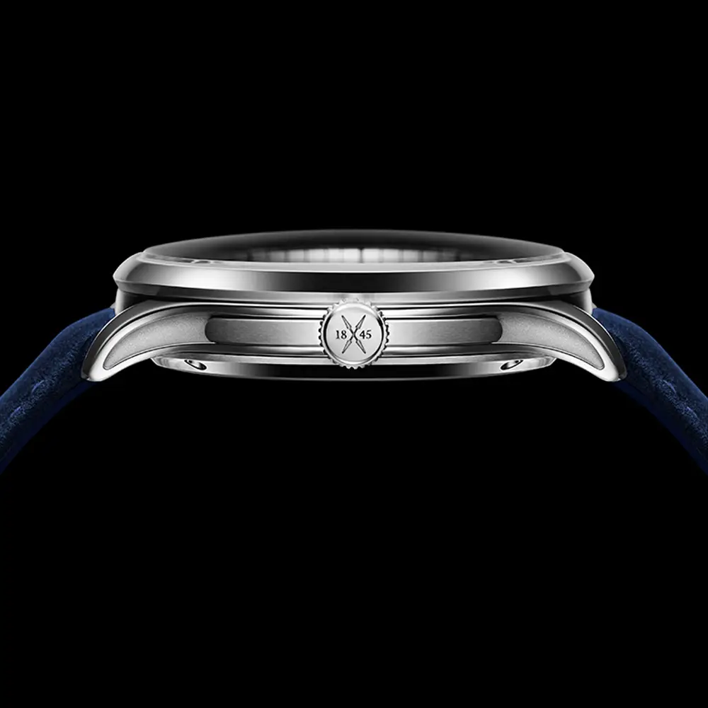 Eleganci podtrhuje modrý pás z jemné kůže s tradiční trnovou sponou, jenž doplňuje barvu ciferníku a zajišťuje pohodlné nošení. Díky vodotěsnosti 5 ATM (50 m) zůstává Promenade spolehlivým společníkem i při překročení hranic běžného dne – ať už jde o podvečerní procházku podél nábřeží, nebo o slavnostní večer v centru.