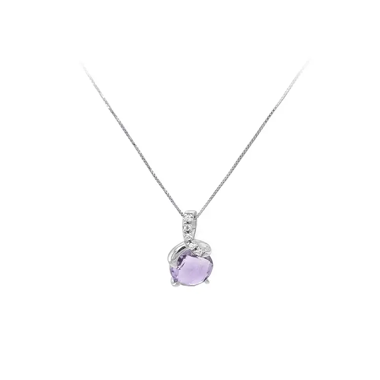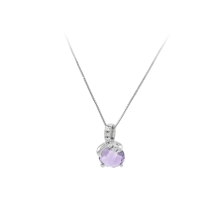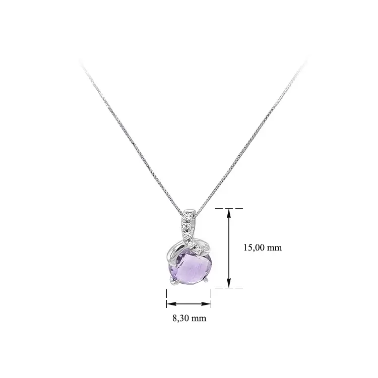 Dámský Náhrdelník s Fialovým Kamenem z Bílého Zlata