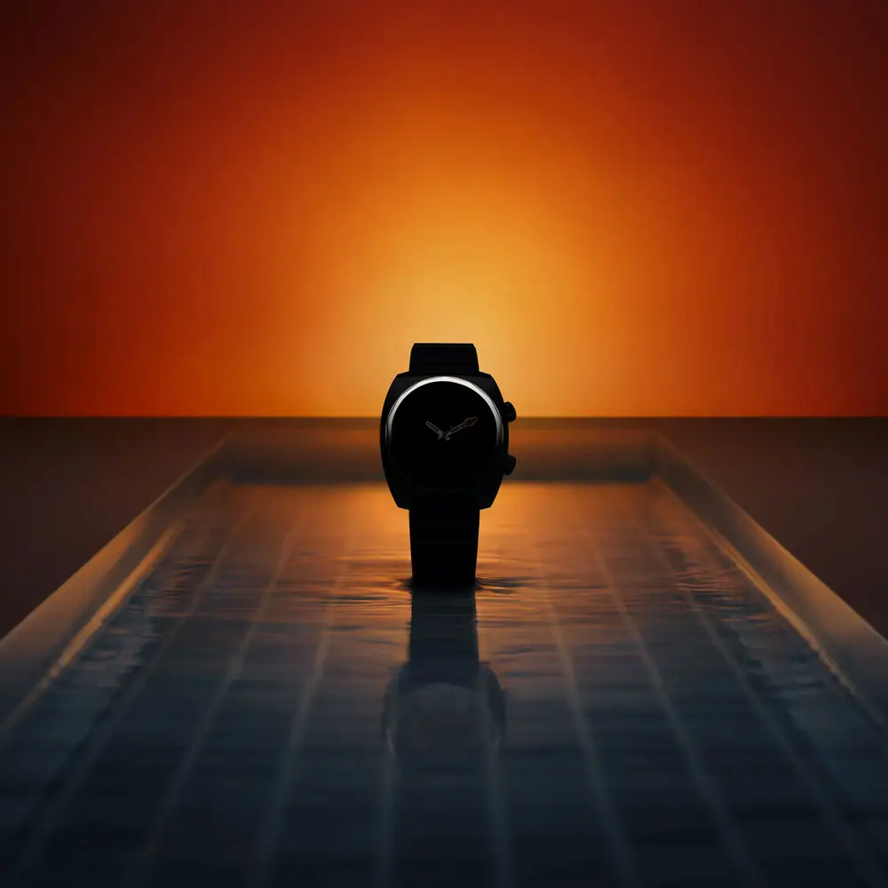 Dodává se se dvěma pryžovými řemínky (modrý + oranžový) s titanovou sponou.