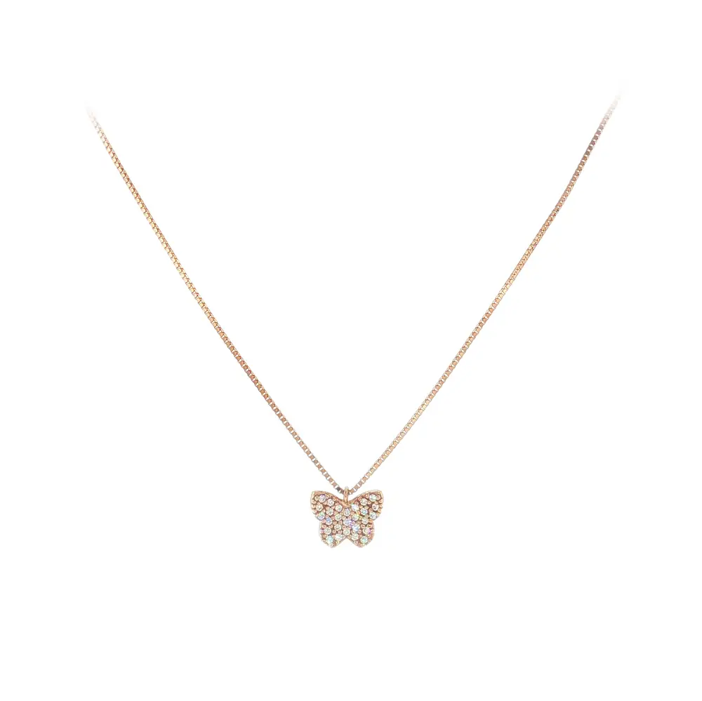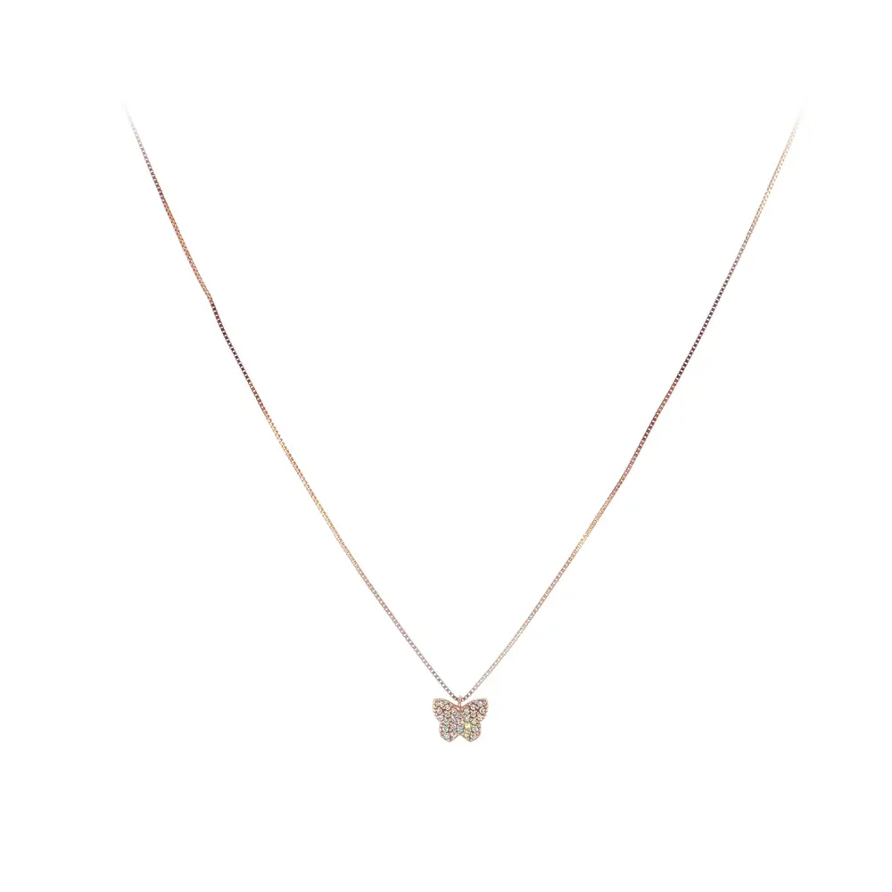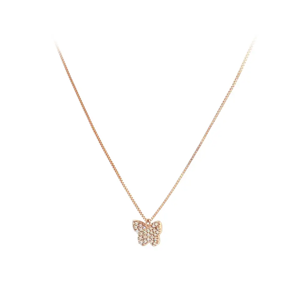 Elegantní náhrdelník z růžového zlata s motýlkem a zirkony
