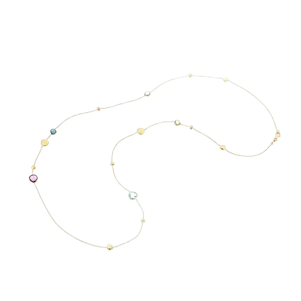 Elegantní zlatý náhrdelník 14kt s barevnými kameny a srdíčky