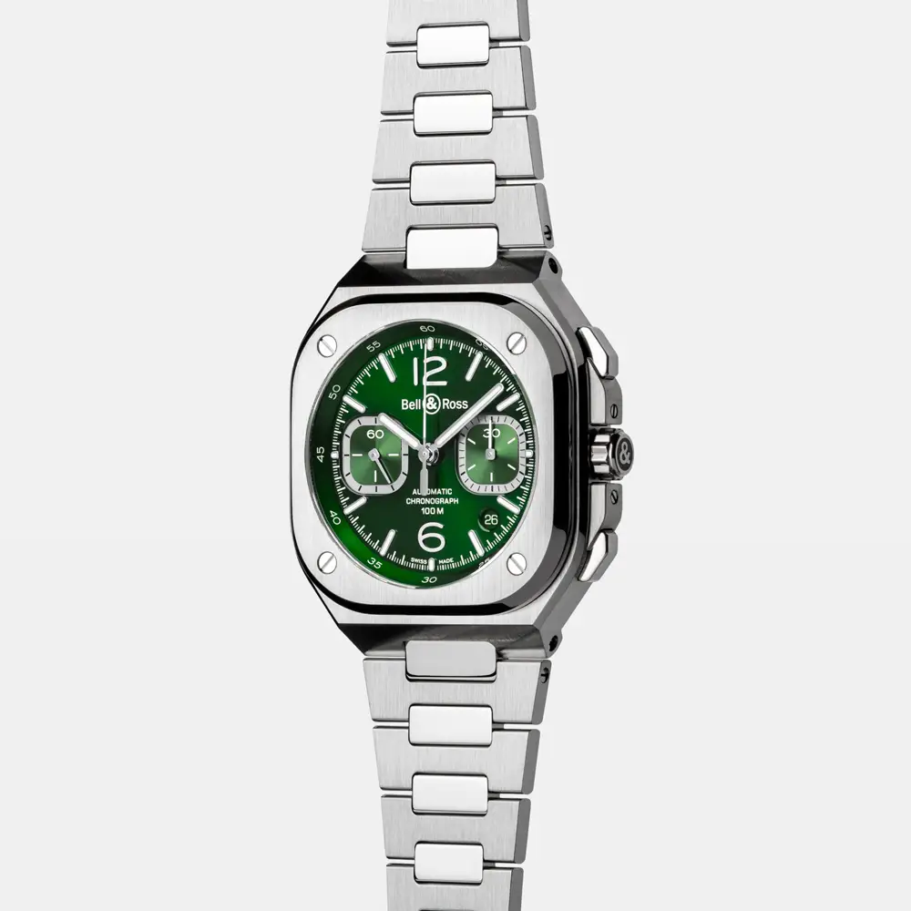 The Bell & Ross BR 05 Chrono Green Steel delivers fresh energy, confident style, and technical precision in a single design. Created for the modern man who values both performance and aesthetics, this chronograph perfectly embodies the spirit of contemporary urban living.