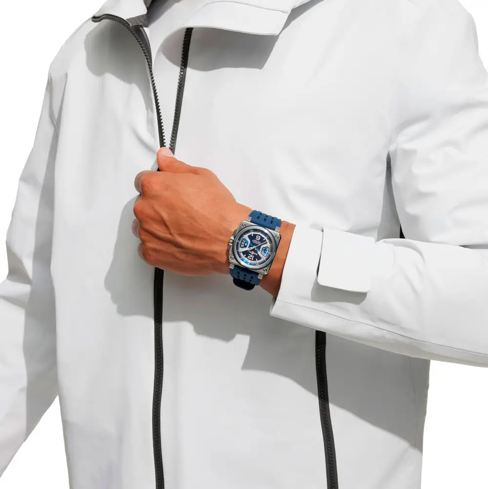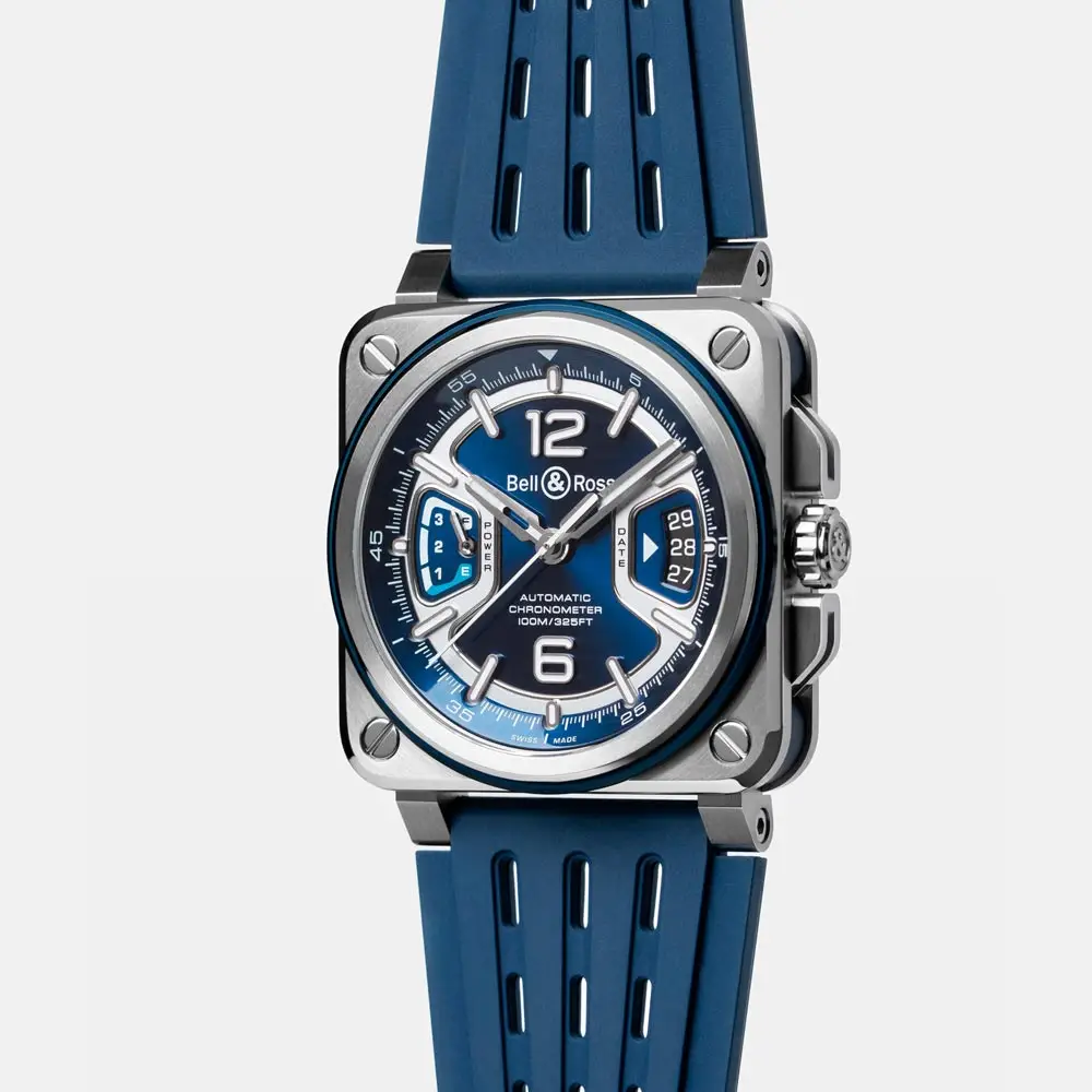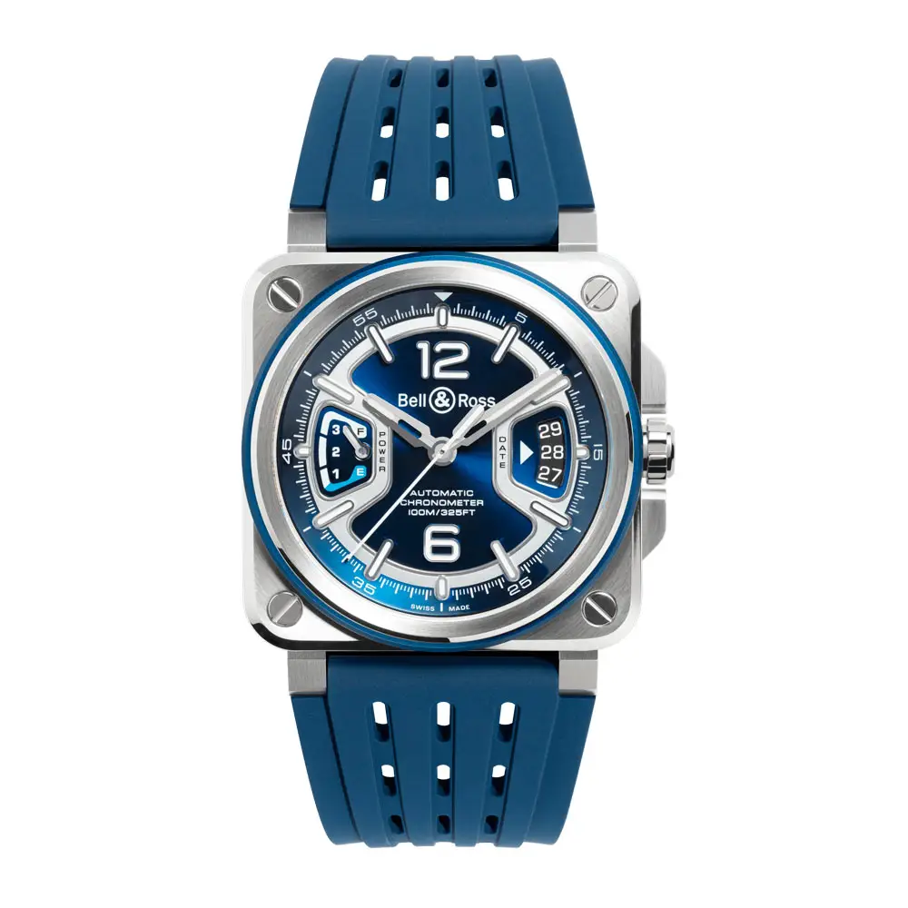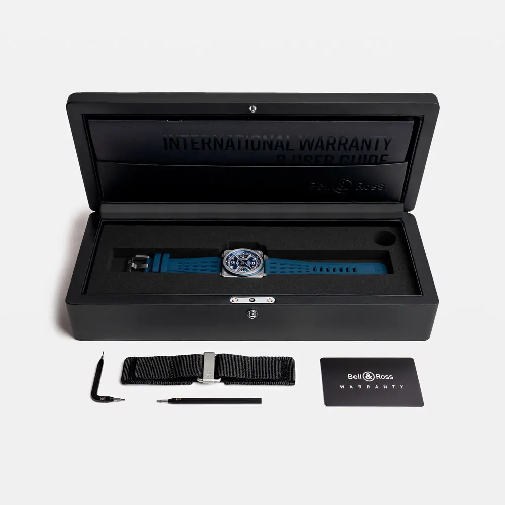 Water-resistant to 100 meters, the watch comes on a comfortable perforated rubber strap that complements its contemporary look. The Bell & Ross BR-X3 Blue Steel is the perfect choice for those seeking sporty elegance, technical mastery, and bold style in one timepiece.