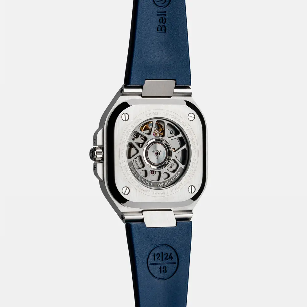 The BR 05 models are manufactured in La Chaux-de-Fonds, Switzerland, combining precision mechanics with automatic movements and luxurious materials such as stainless steel, rose gold, skeletonized finishes and ceramic. There are also variants with an integrated steel tension, rubber strap or diamond details for an even more distinctive look.