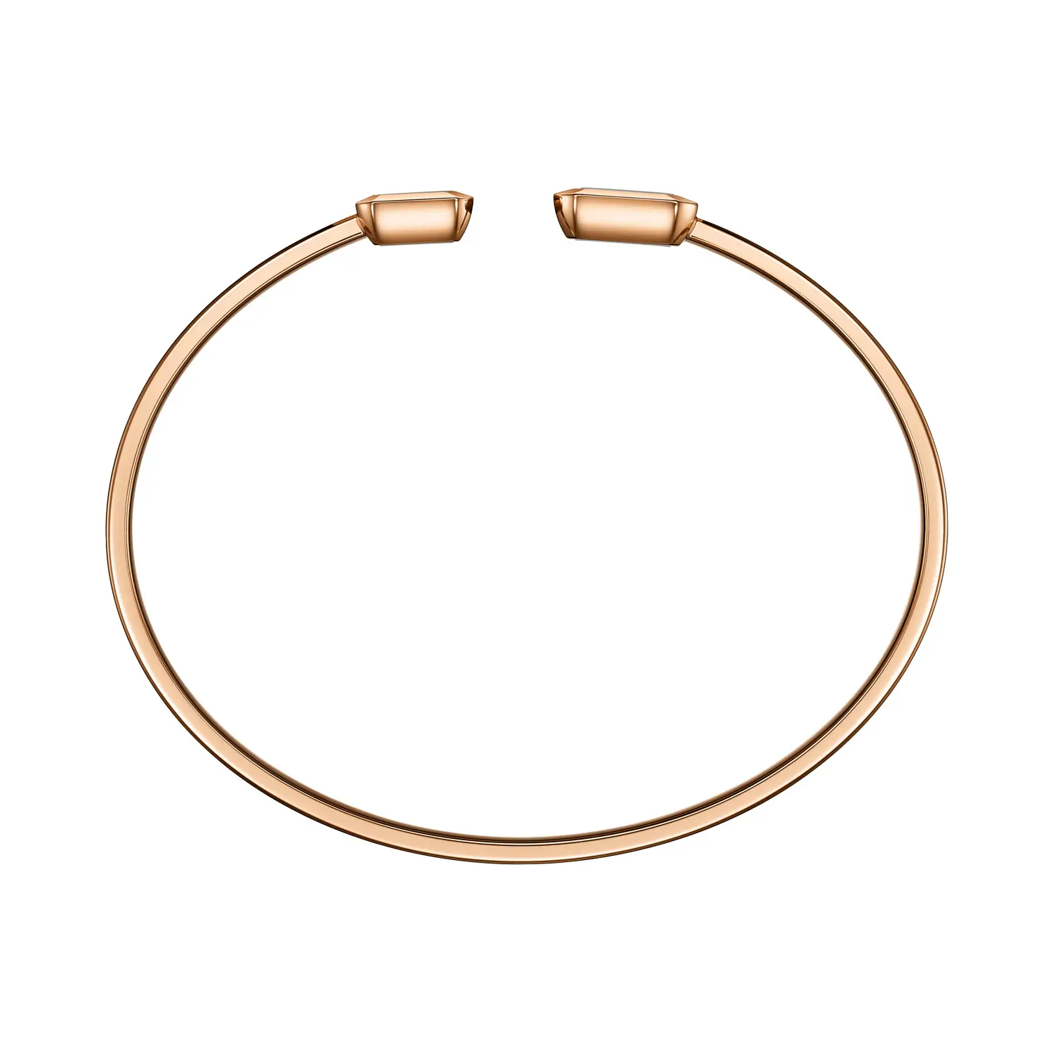 Chopard Happy Diamonds Icons Bangle 85A114-5002 celebrates joy, movement, and feminine elegance. Crafted from 18-carat ethical rose gold, this delicate bangle exudes a warm, romantic glow. At its heart are free-moving diamonds enclosed between two sapphire crystals, dancing gracefully with every wrist movement – an iconic Happy Diamonds signature that embodies freedom and the joy of life.