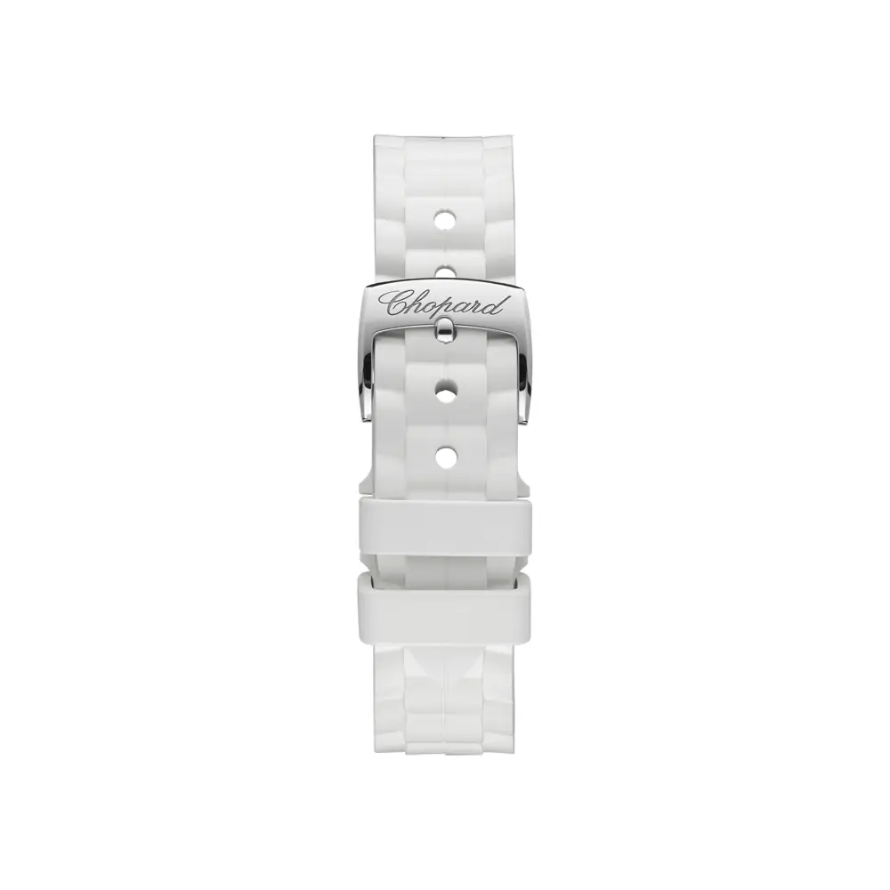 The white rubber strap enhances both the sporty and elegant character of the watch while providing excellent comfort. Inside beats a Swiss quartz movement, ensuring exceptional accuracy and reliability without the need for winding. The Chopard Happy Sport 278582-3001 is more than a watch – it is an expression of feminine confidence, joy and refined modernity, embodying Chopard’s timeless charm.