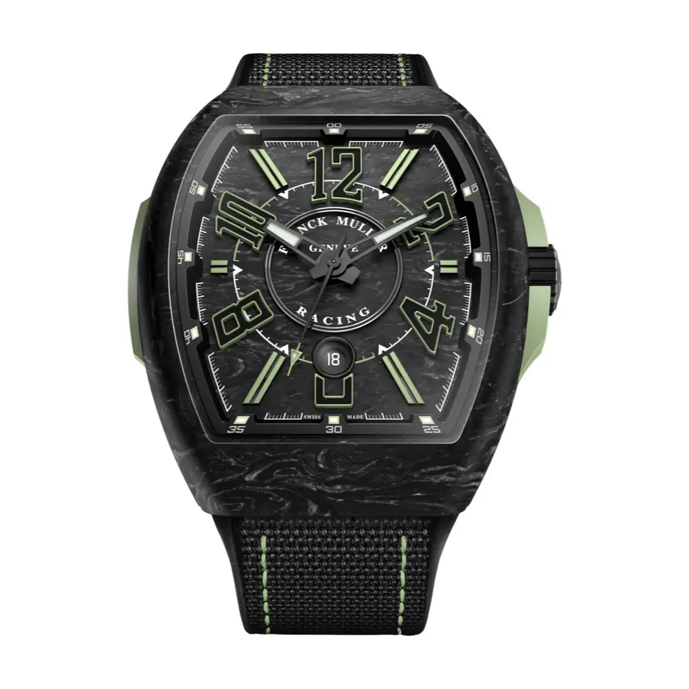 Design elements such as large applied numerals, distinctive hands, sporty rubber or textile straps and skeletonised dials give the Vanguard collection a distinctive and contemporary look. Watches often include complications such as a chronograph, tourbillon or automatic date calibre, all powered by Franck Muller's own mechanical movements.