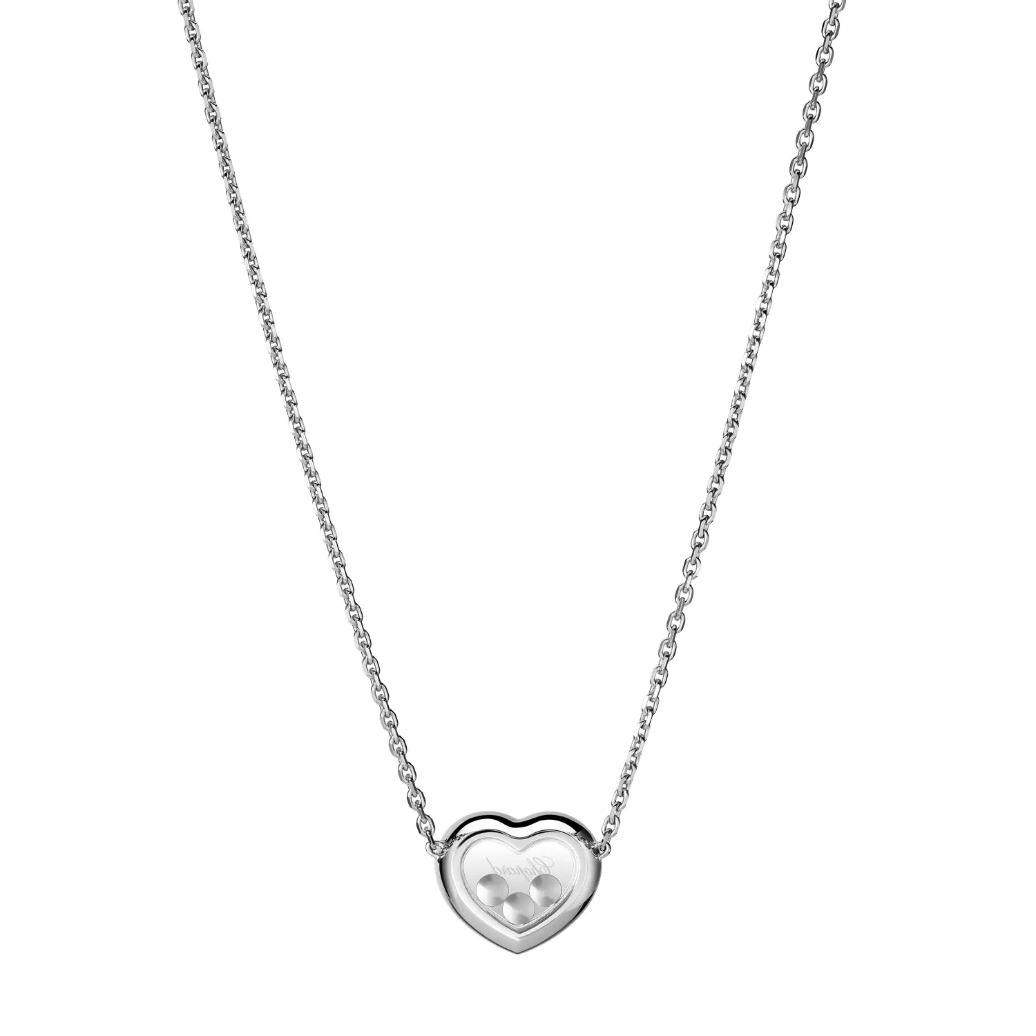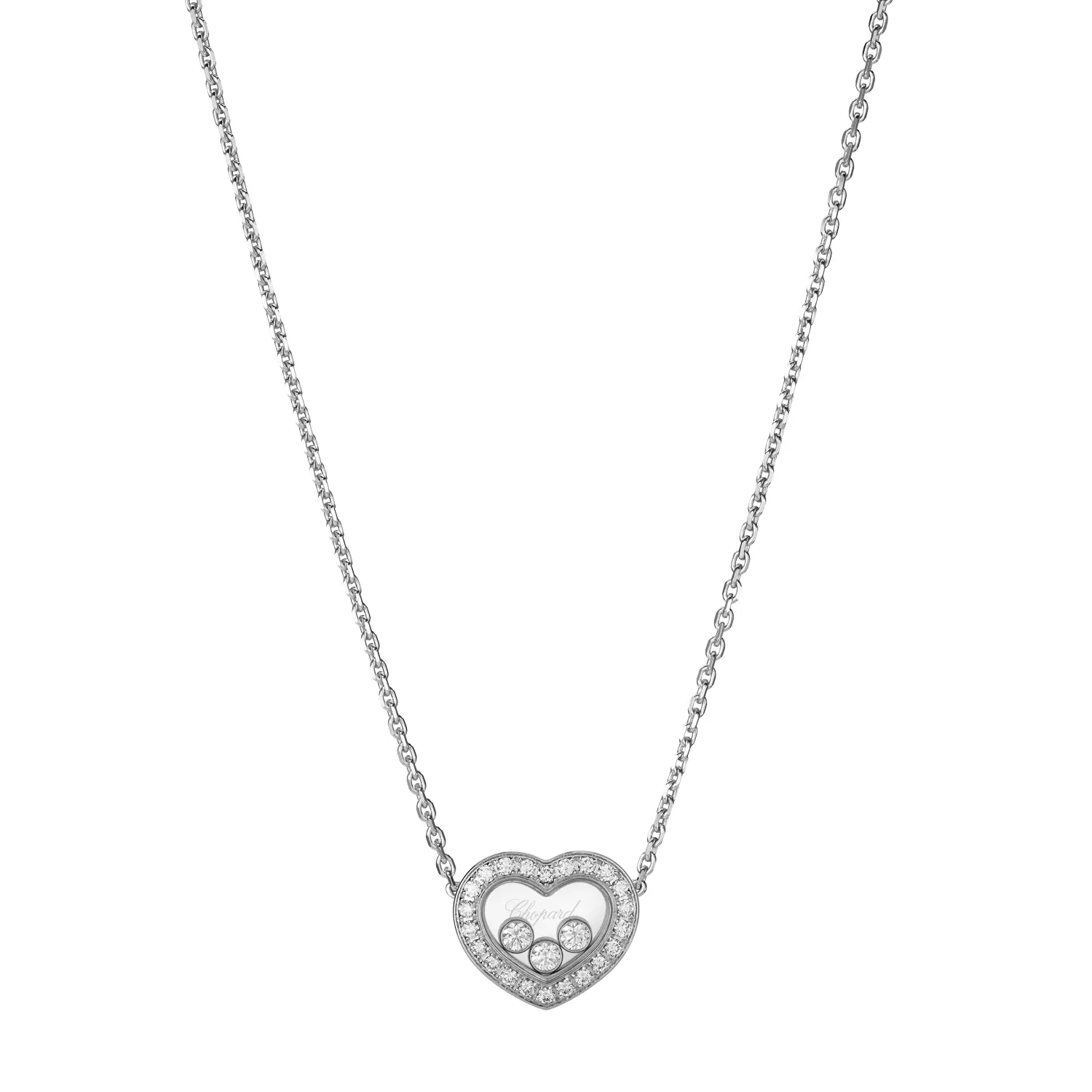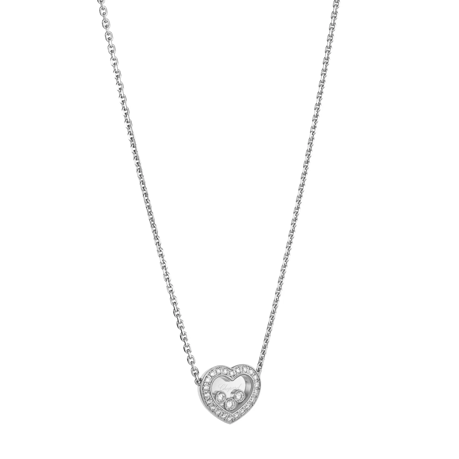 This elegant necklace from the Happy Diamonds Icons collection embodies the perfect balance of delicacy and luxury. Crafted in 18 k white gold and featuring freely moving diamonds totaling approximately 0.35 ct, enclosed between two sapphire crystals, it creates a mesmerizing play of light with every movement. This signature design by Chopard celebrates freedom, joy, and feminine grace.