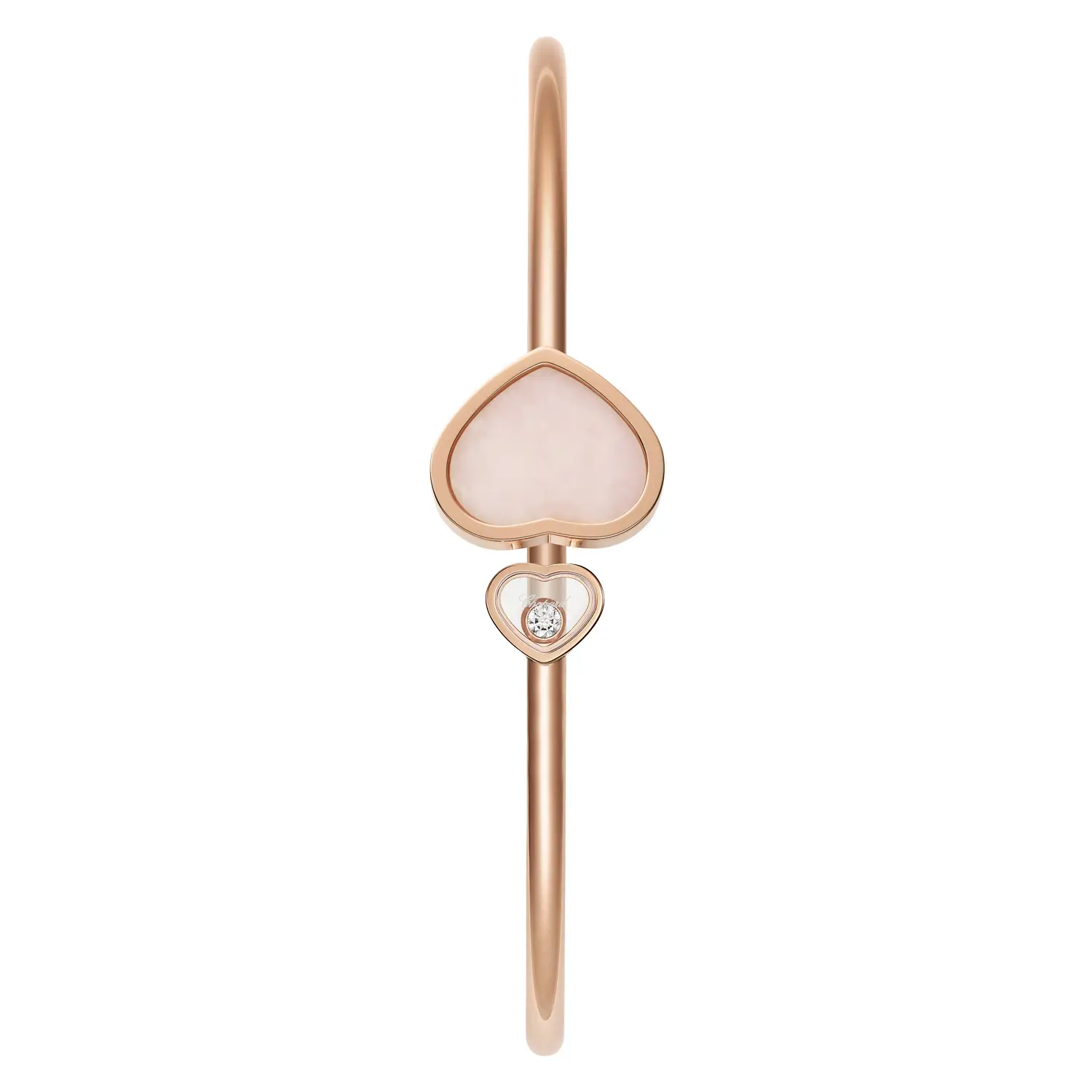 The Chopard Happy Hearts 857482-5623 bracelet combines the iconic heart motif with the soft femininity and joyful spirit of the Happy Hearts collection. Crafted from ethical 18-carat rose gold, it features a pink opal heart and a sparkling diamond, creating a refined balance of warmth and luminosity.