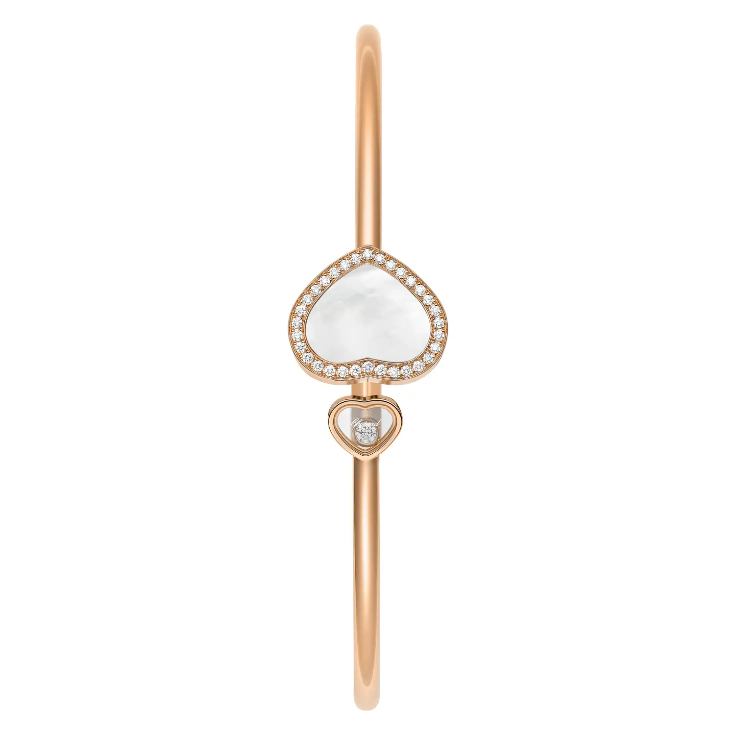 The Chopard Happy Hearts 85A074-5304 bracelet embodies the elegance, femininity, and emotional symbolism of the Happy Hearts collection. Crafted from ethical 18-carat rose gold, it features a mother-of-pearl heart alongside a freely moving diamond that sparkles with every movement. This iconic design captures the perfect balance between luxury and lightness.